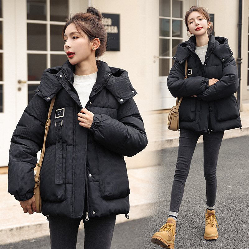 綿服の女性2024の新しいoversizeパン服の短い綿服秋冬のコートは帽子の綿入れのファッションを厚くします。