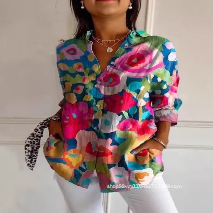 クロスボーダーヨーロッパとアメリカンスタイルの女性のシャツ花柄 3D デジタル印刷ファッション春と夏のアマゾン多用途新モデル外国貿易