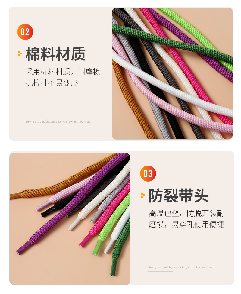 メーカー在庫ありの扁円形靴紐、スウェットシャツの紐、スニーカー、ボードシューズ、バスケットボールシューズの紐に適しています。
