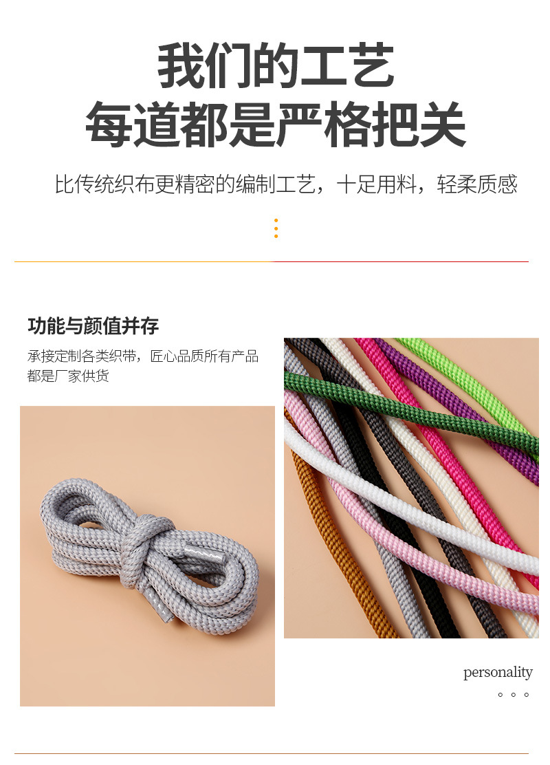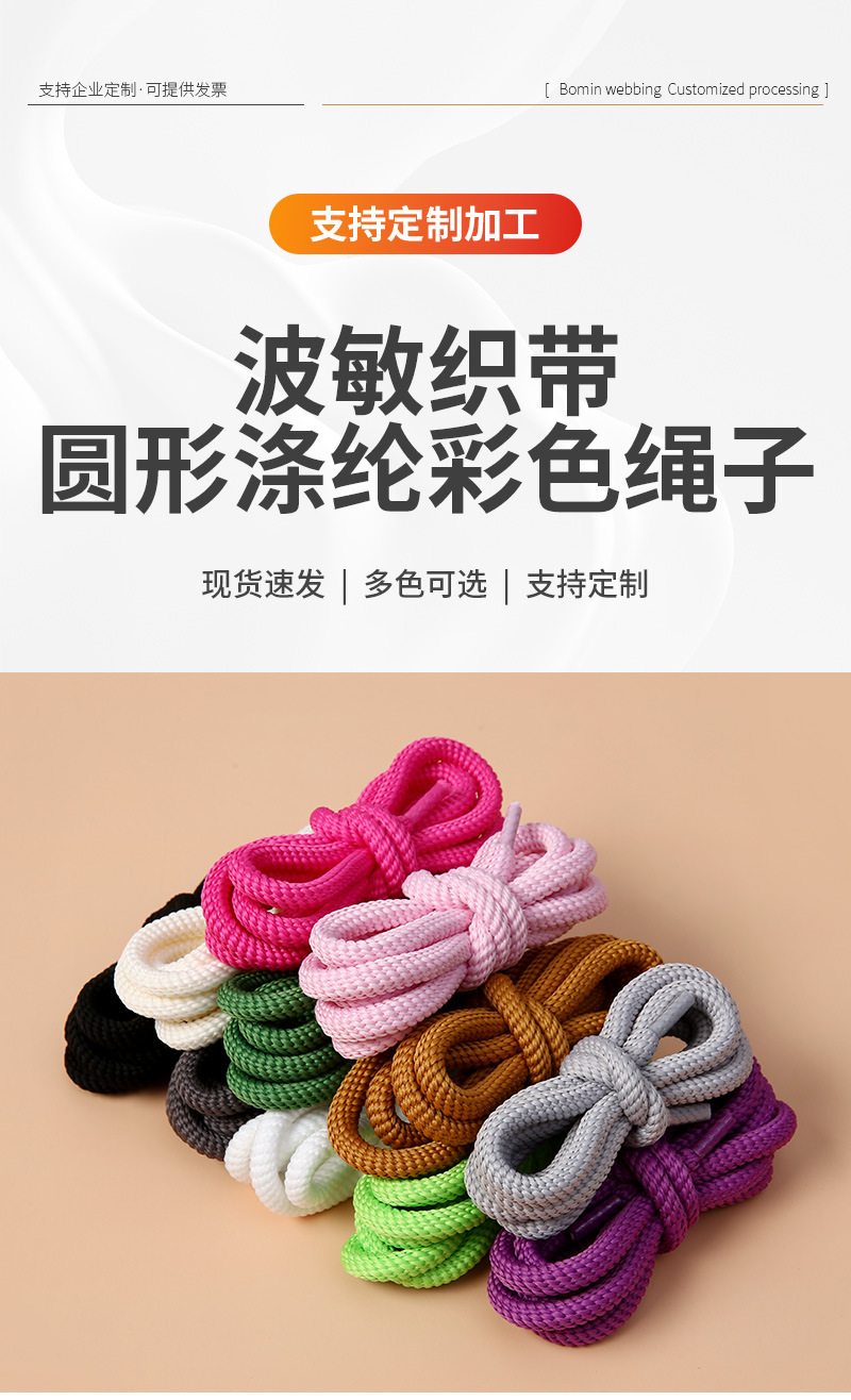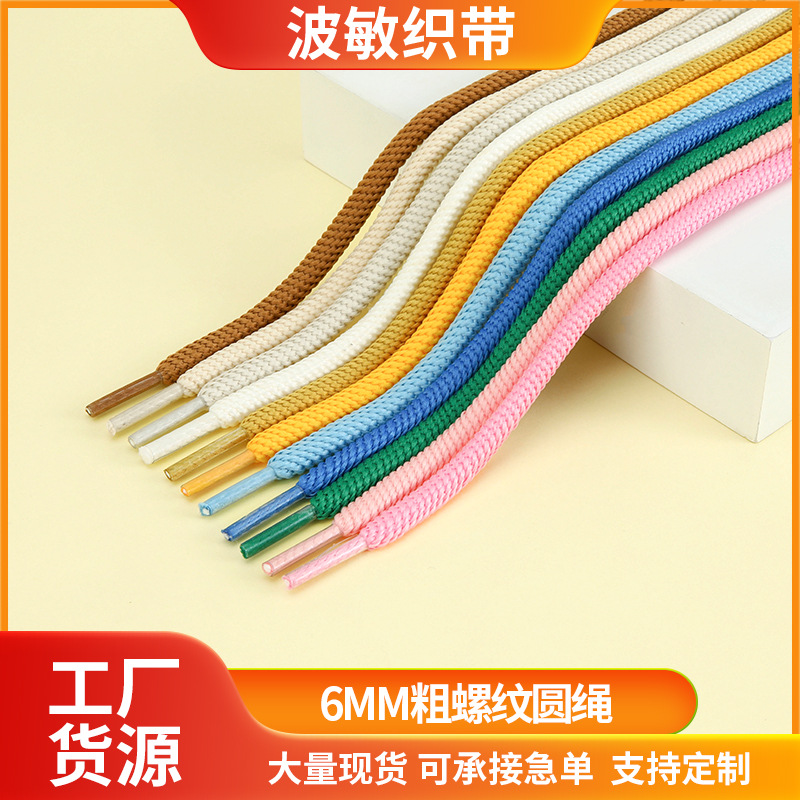 6mm中太ポリエステル糸丸紐靴紐、衣類帽子紐、カジュアルパンツウエスト紐、カスタム対応