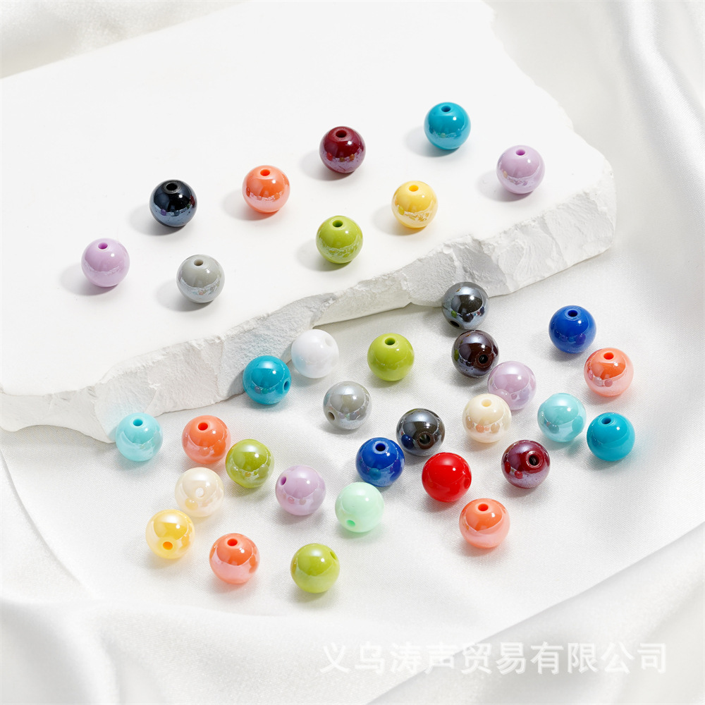 アクリル無地カラーメッキ直穴丸玉ビーズ DIY手作りブレスレットビーズ素材アクセサリー