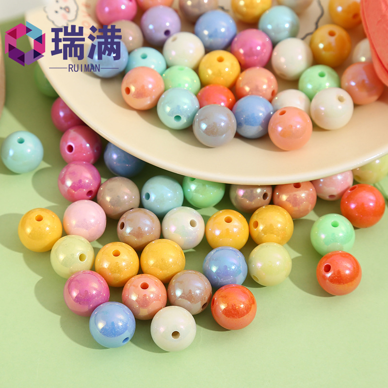 斤装亚克力镀彩圆珠6-16mmAB镀彩珠diy饰品配件珠子散珠镀彩圆珠