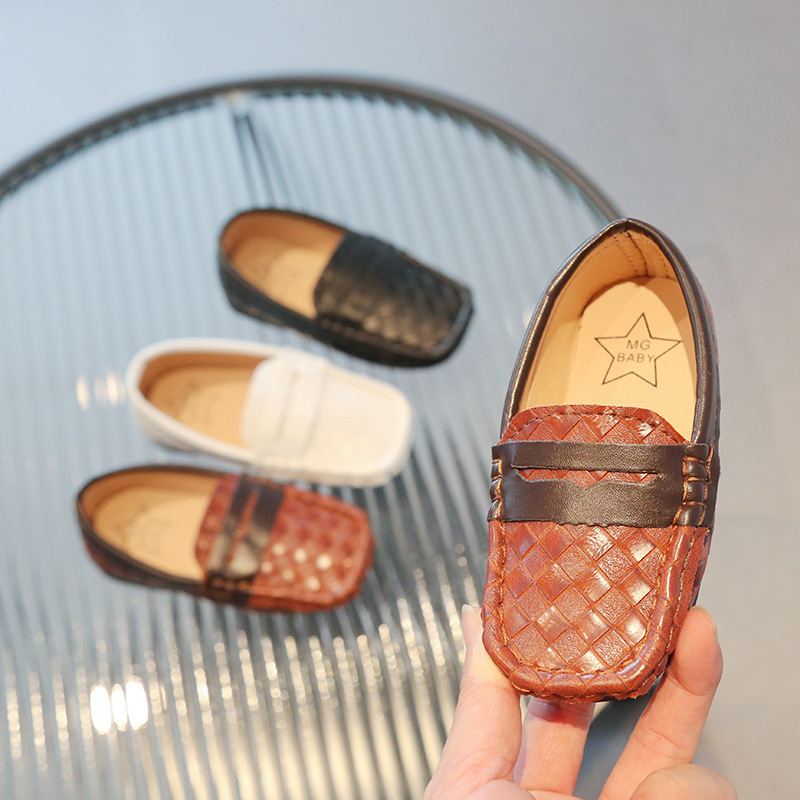 子供の小さい靴の柔らかい底の赤ちゃんは靴を履いて2025年の春秋の金の韓国版の男の子の豆の靴を履いて片足の靴を踏んでいます。