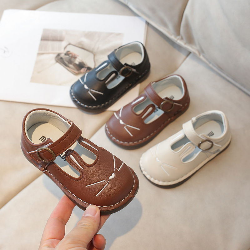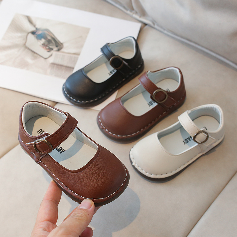 子供の靴の復古風の金属は柔らかい底のマジックを掛けて王女の靴の2025秋の新型の女の子の小さい靴を貼ります。