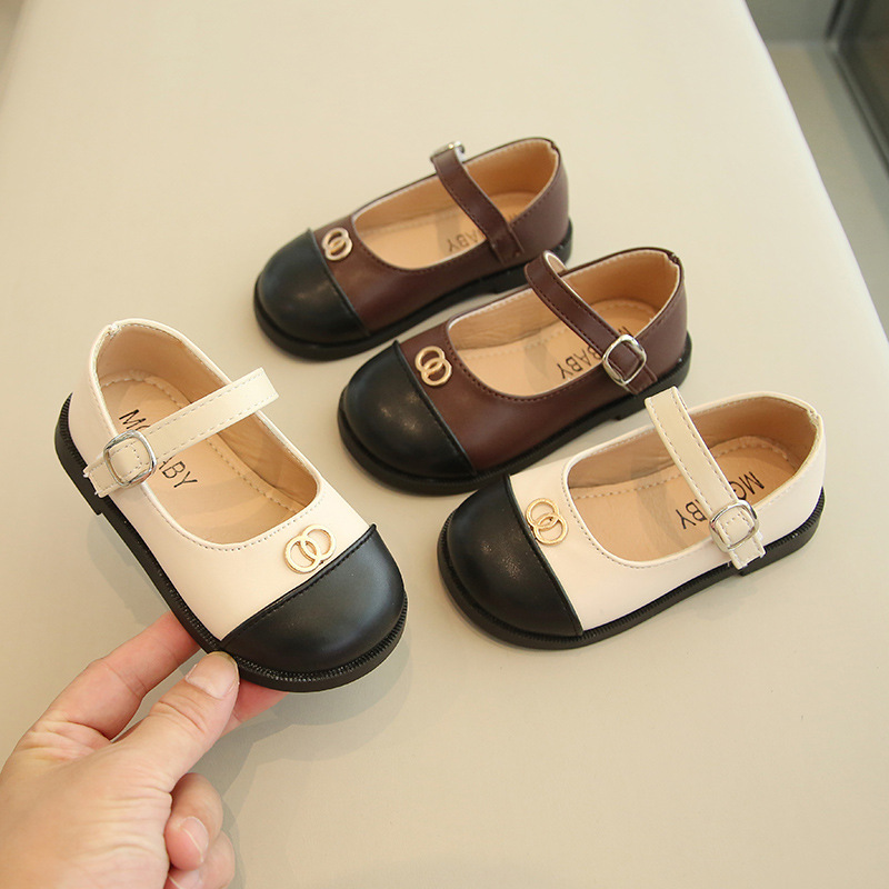子供の小さい靴2025年春秋の新型の女の子の金属は王女の靴の中の子供の学校の柔らかい底の靴を掛けます。