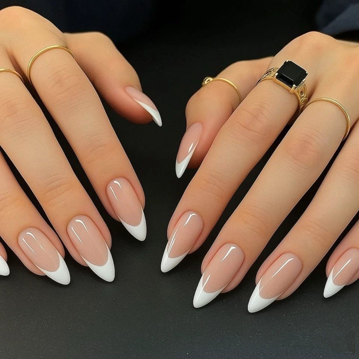 ブラックフレンチエナメルアーモンド甲水光美甲片insファッション偽爪パッチnails