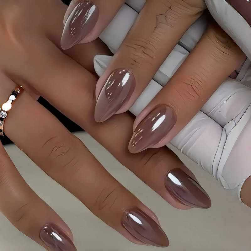 24片 咖啡色 釉面 水光穿戴甲 简约纯色系美甲杏仁型甲片