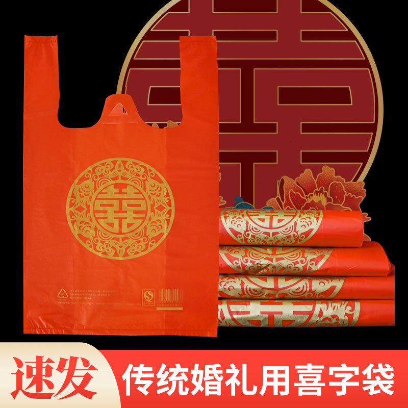 厚手の赤い喜字ビニール袋結婚祝い満月喜糖手提げ梱包袋福字背心袋卸売り