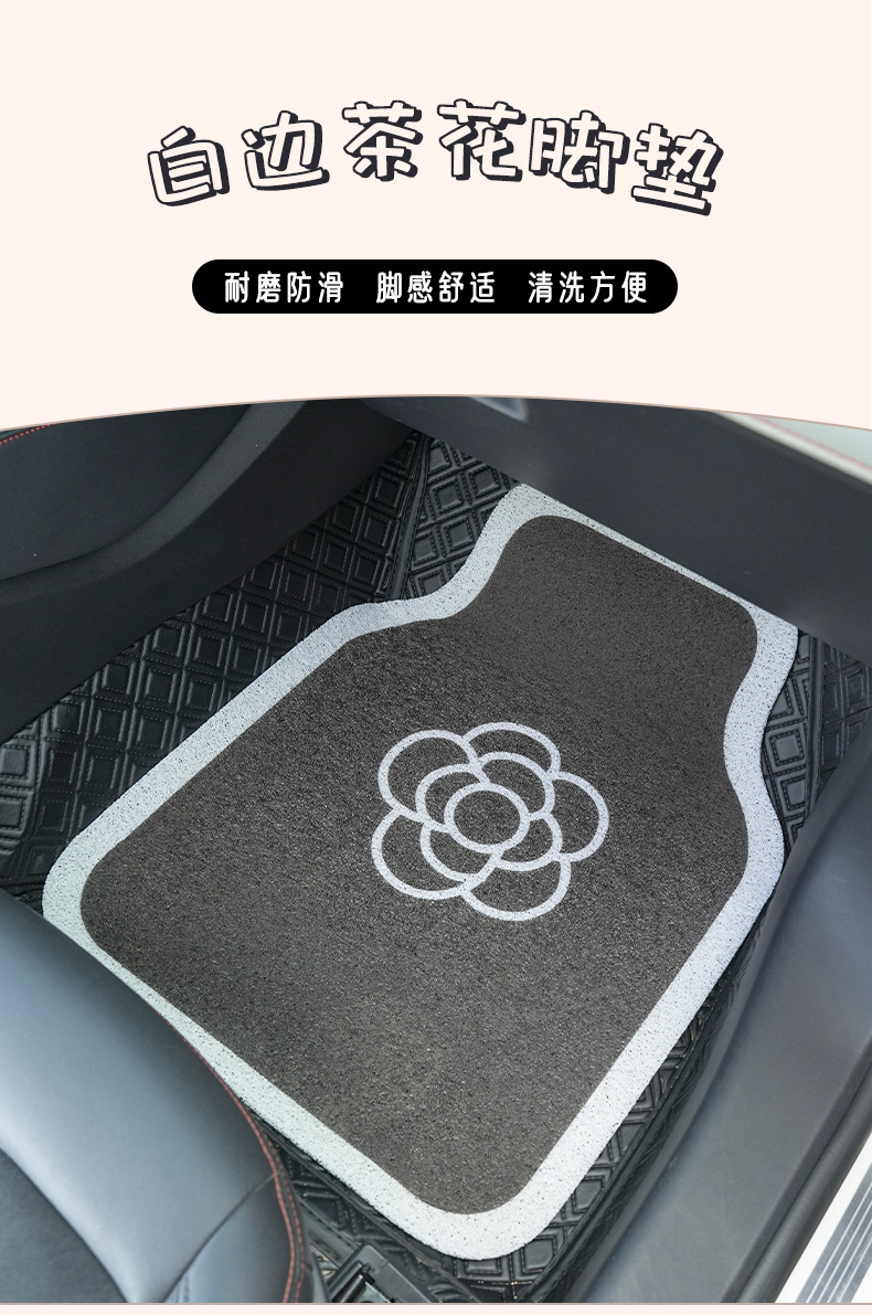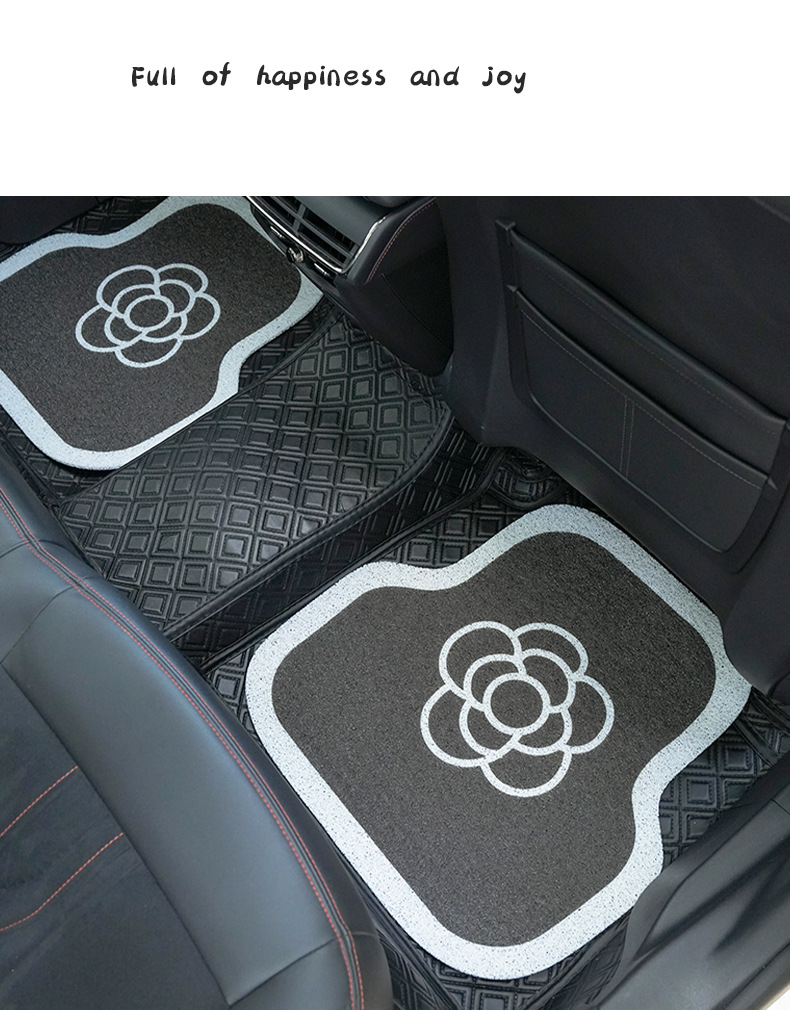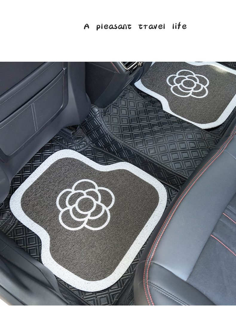 自動車の足マットのツバキの花の糸の輪の通用するモノリシックの汚れ防止のじゅうたんは車内の車のマットの後部の足のマットの通用を飾ります。