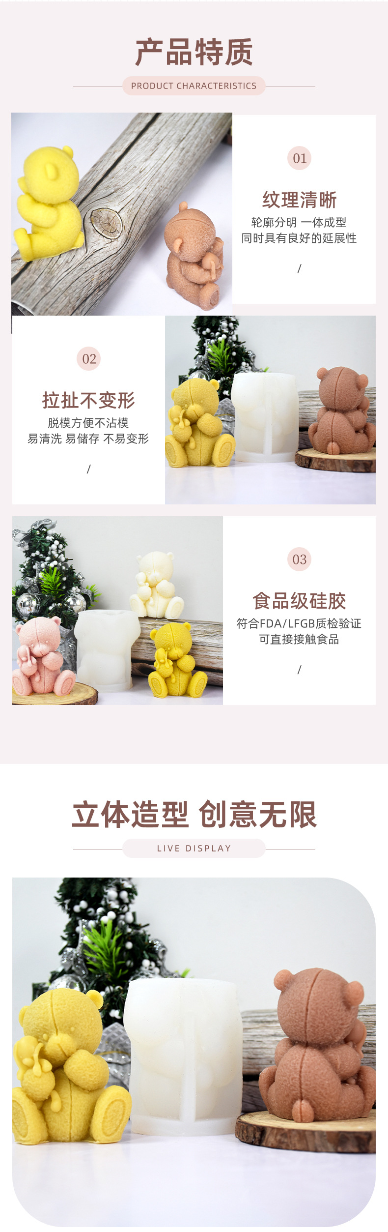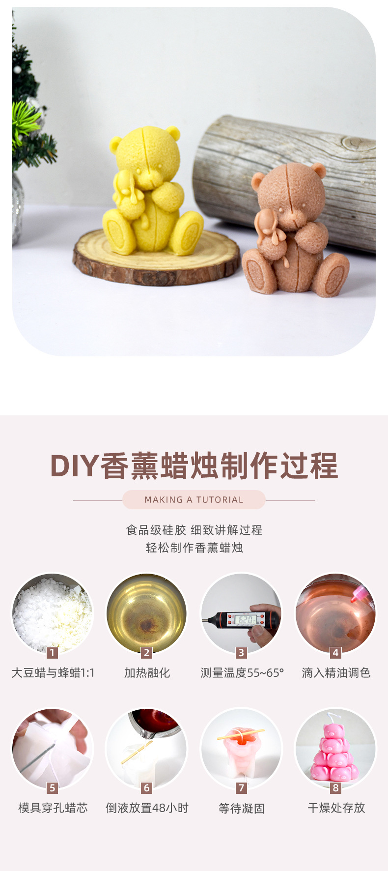 新型アニメ抱っこ人形熊香薫ろうそくシリコン金型diy焙煎ツール石膏置物金型