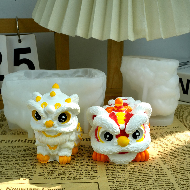 国風のお祝いの目が覚めるライオンの金型の小さい置物の高級感のデスクトップの装飾の工芸品の創意の誕生日のシリカゲルの製品