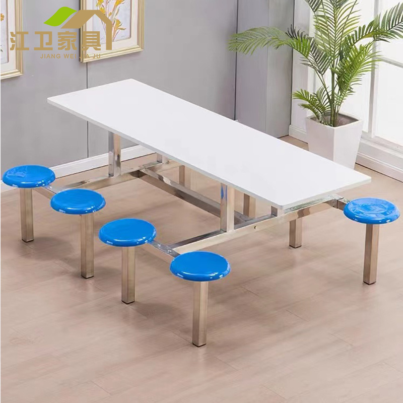 オーダーメイドのテーブルを加工します。ステンレスのテーブルと椅子のファーストフードの会社の従業員食堂のステンレスのテーブルと椅子の組み合わせです。