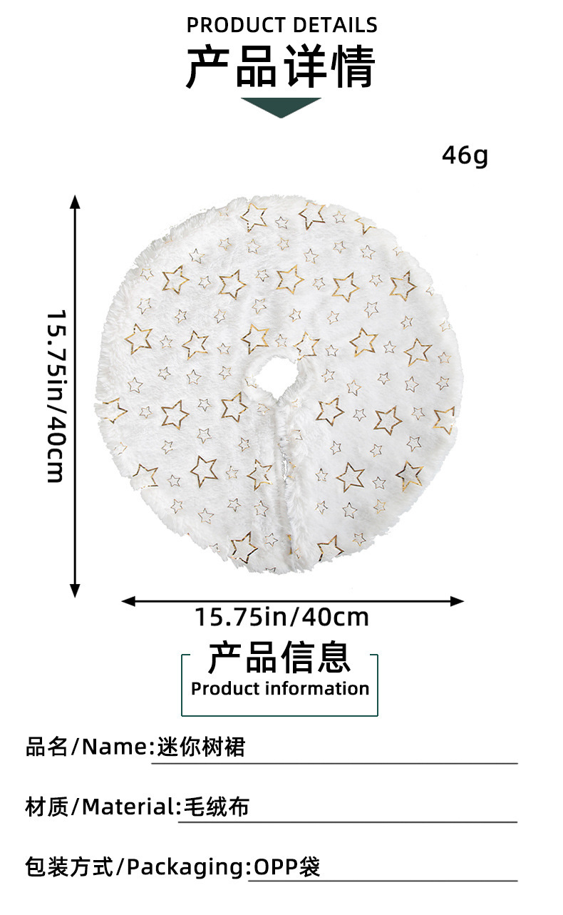 港之恋38CM小号迷你圣诞树裙白色经典毛绒树裙桌面圣诞树装饰圣诞