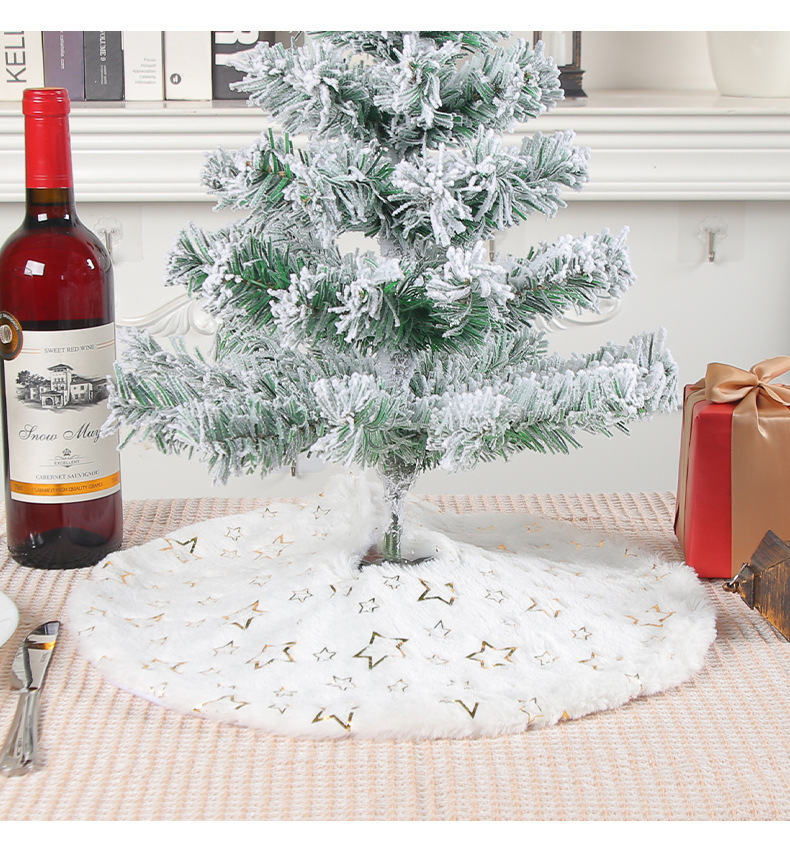 兰信跨境新款圣诞节装饰迷你白色毛绒树裙烫金场景布置圣诞树围裙