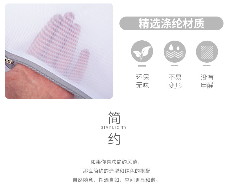 現代シンプルな風洗濯袋卸売りグレージッパー細網サンドイッチ胸袋厚いひも洗濯袋