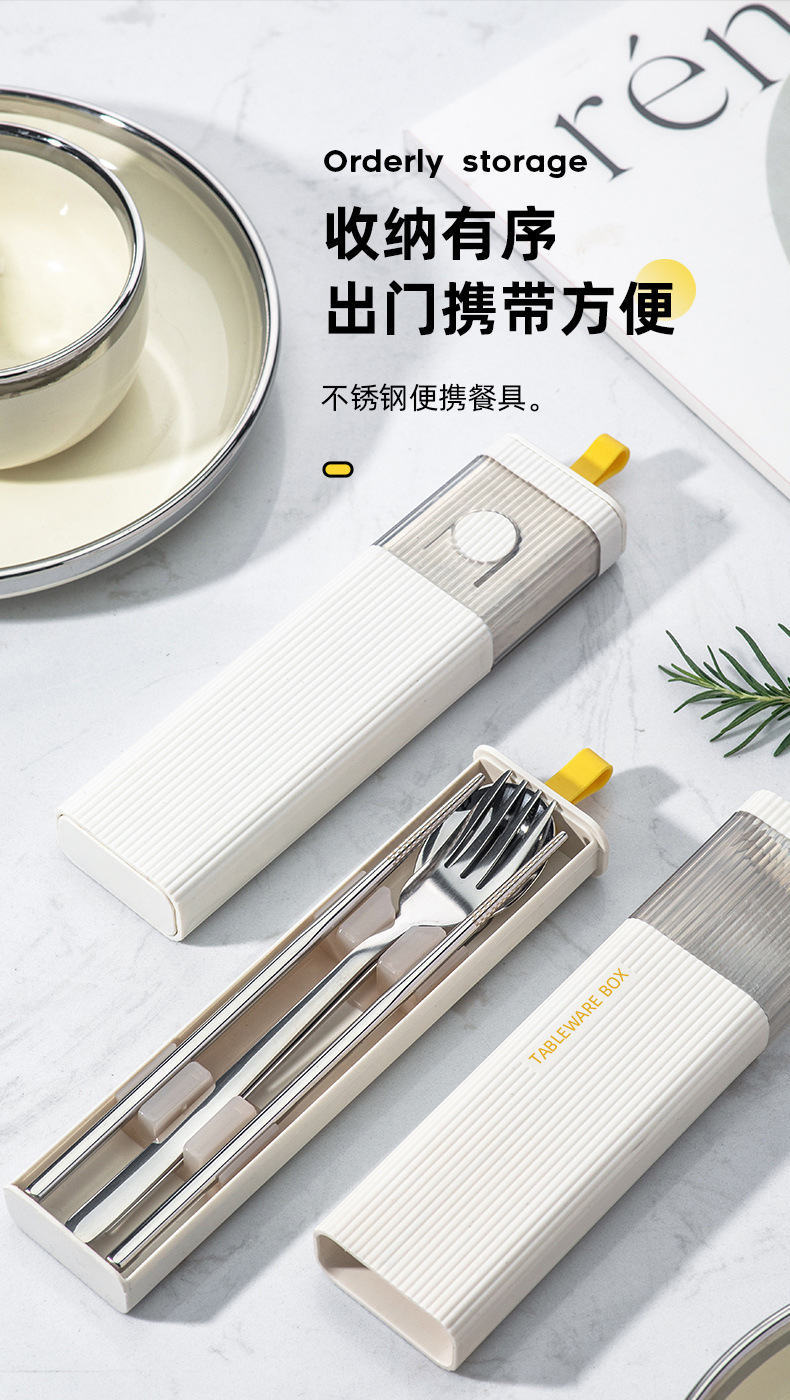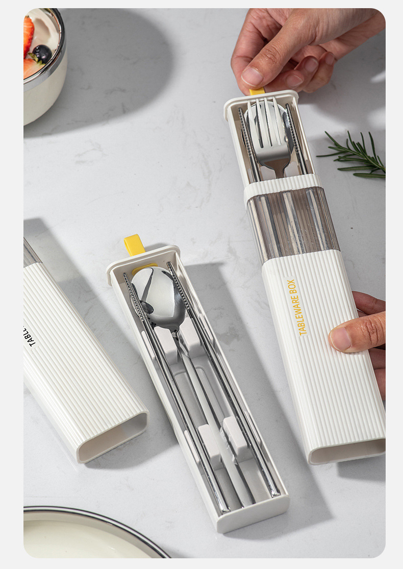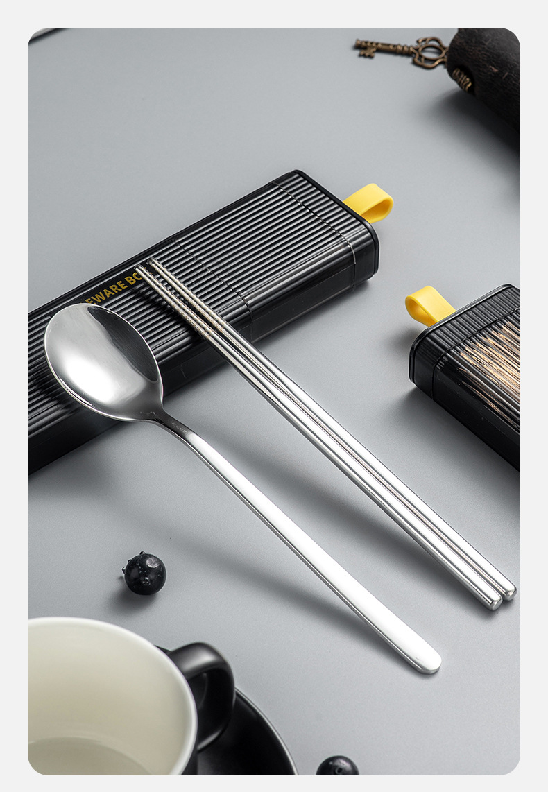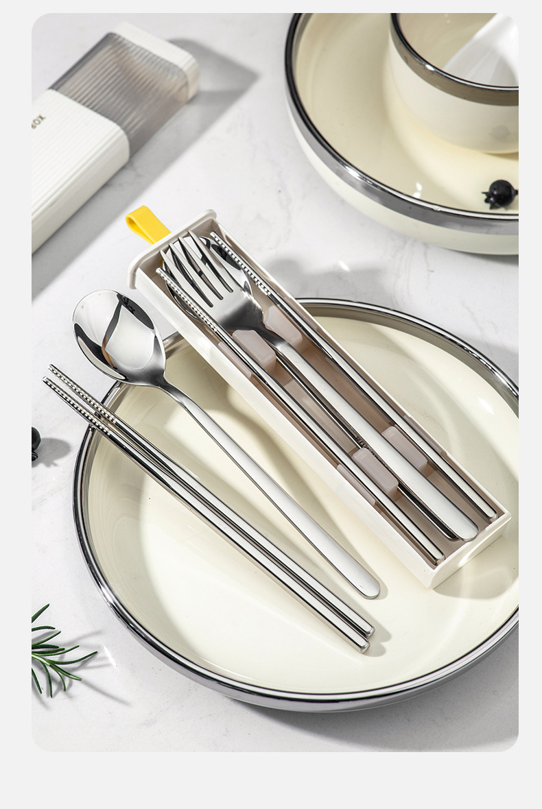 カトラリーセット304ステンレス箸スプーンフォーク三点セット学生携帯セット一人用収納ケース
