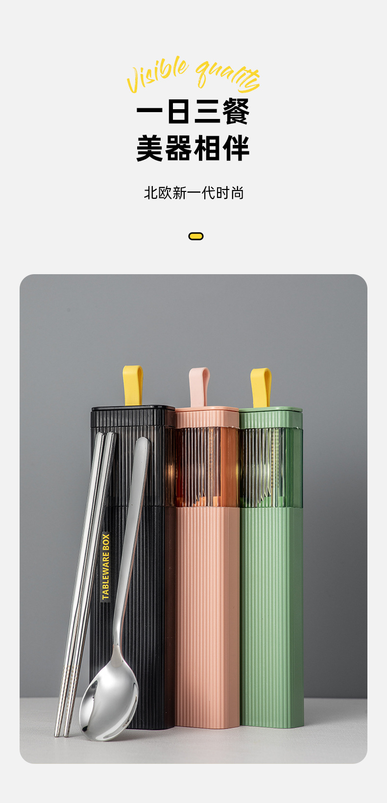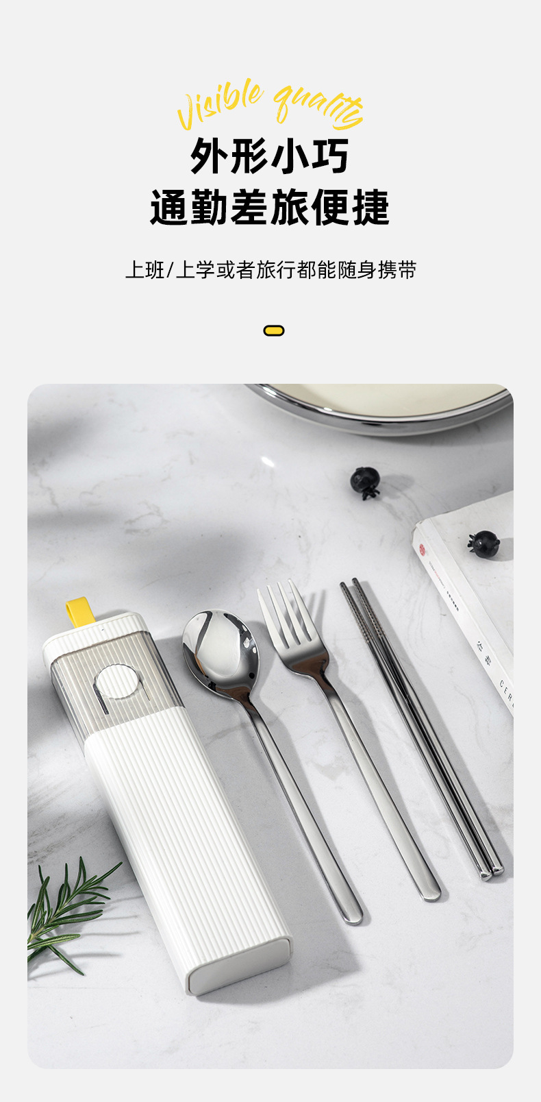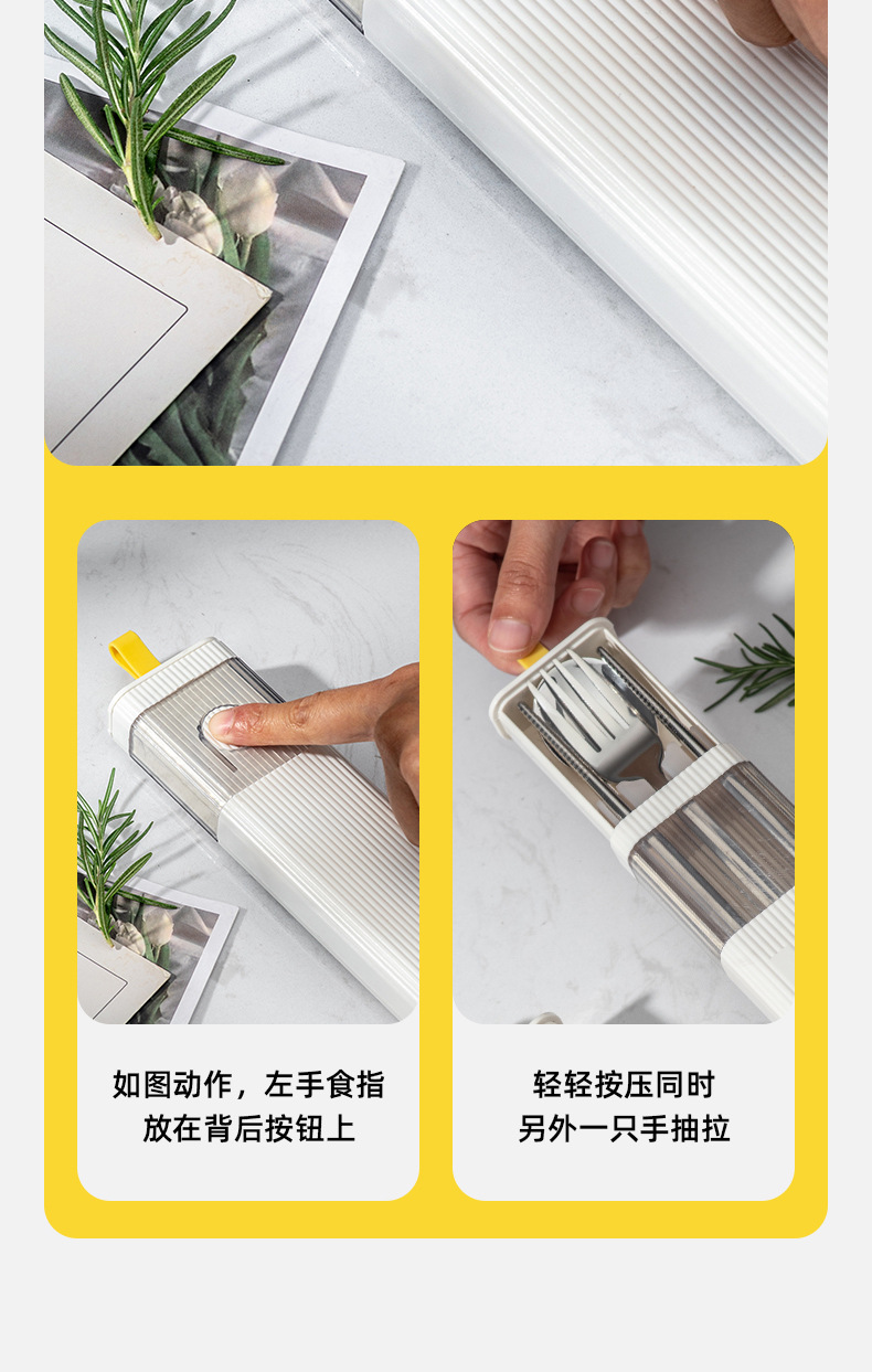 カトラリーセット304ステンレス箸スプーンフォーク三点セット学生携帯セット一人用収納ケース