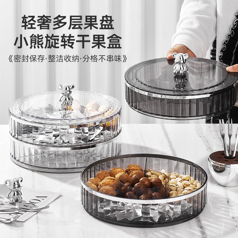 軽い贅沢な果物皿客間茶数家庭2023新型回転果物皿キャンディーナッツにドライフルーツ収納ケースを置く
