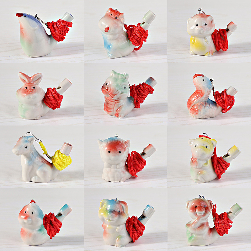 新しいストラップ付き十二生肖水鳥口笛12249吹き出し音口笛陶磁器工芸品