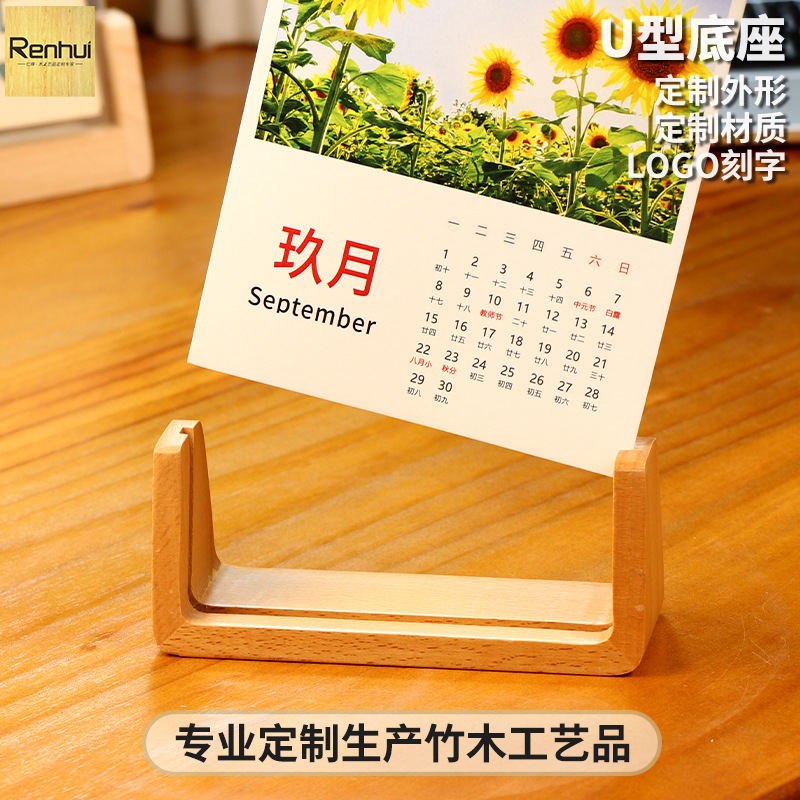 卓上カレンダーベース無垢材U字型フォトフレーム卓上木製ベースホテルフロントデスク装飾品アクリル木製スタンド