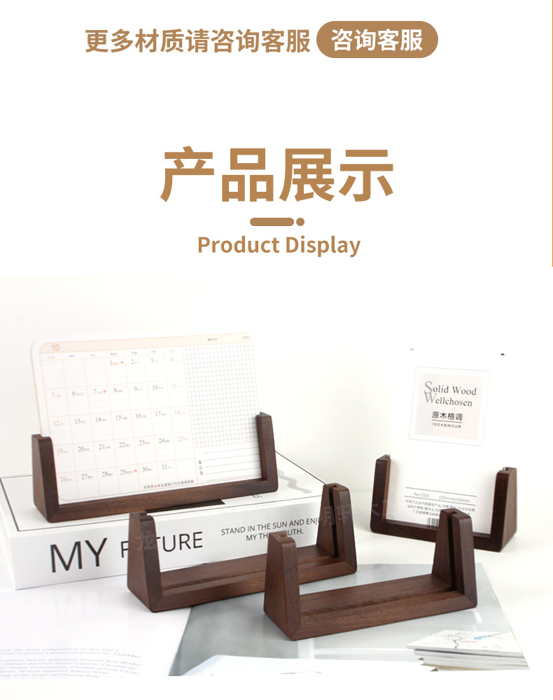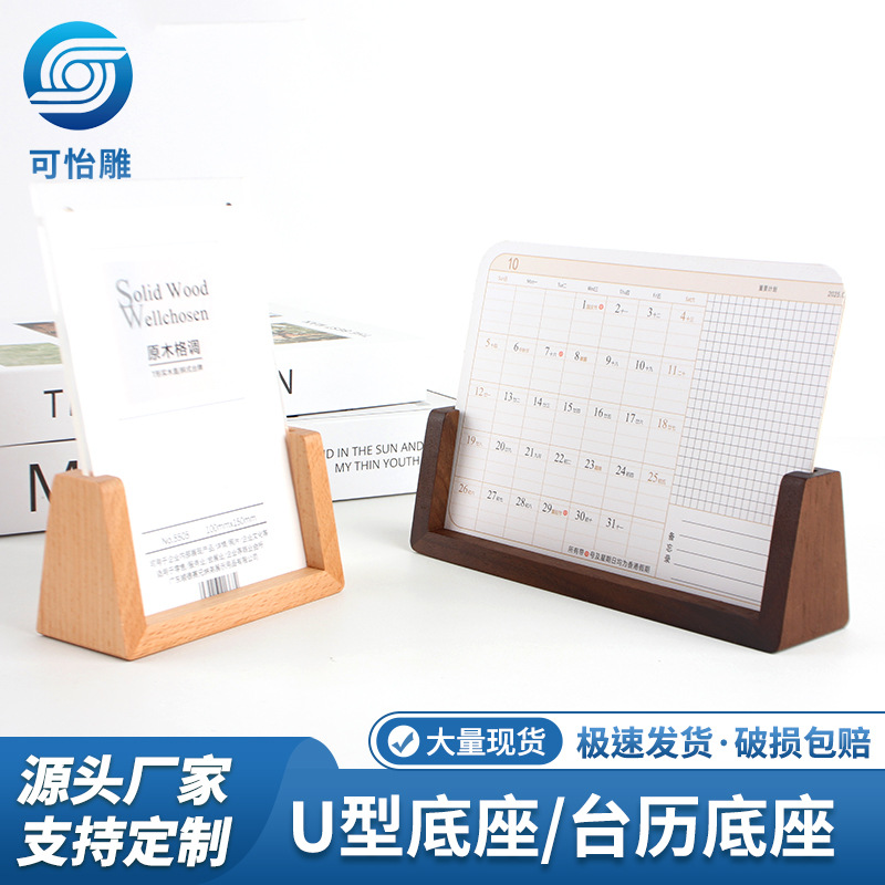 黑胡桃U型台历架桌面照片展示实木底座商务办公现货批发 定制LOGO