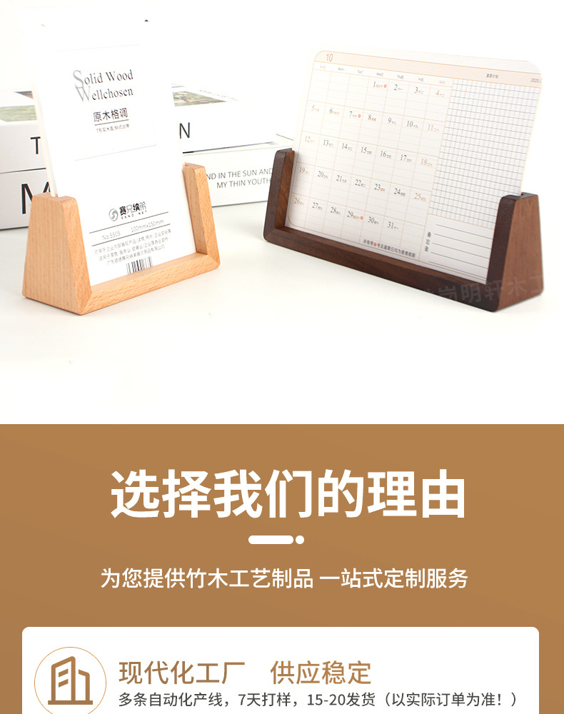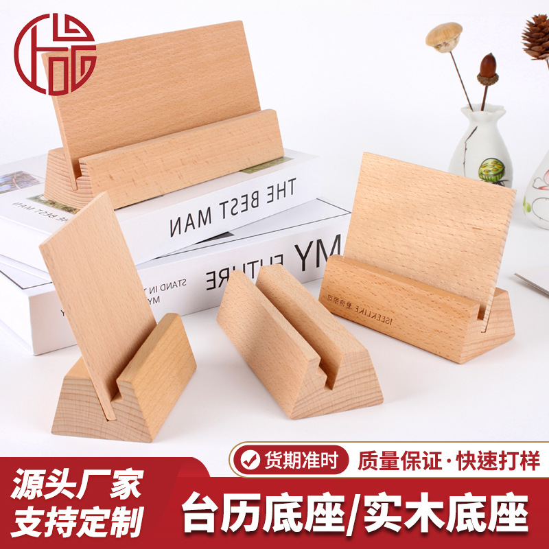 台历底座实木底座酒店前台桌面摆件木支架日历木底座可来图印logo
