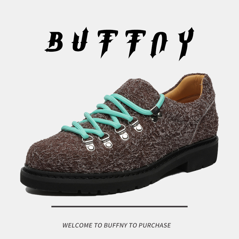 2024秋の英倫風カジュアルな丸い頭が毛皮のダービー靴をひっくり返します。