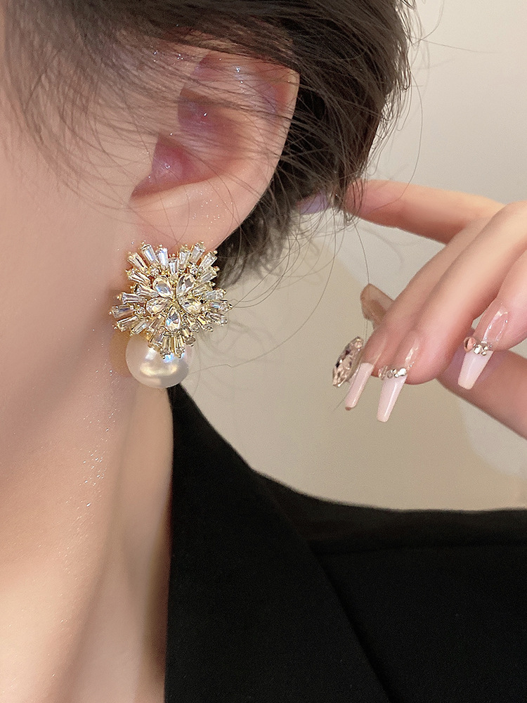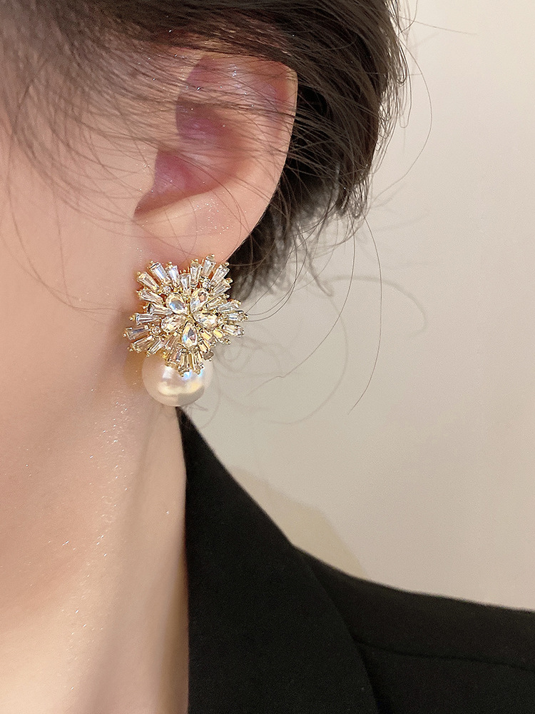 クリスタルリングイヤリング夏2024新型爆発金独特ピアス軽贅沢高級感気質耳輪耳飾り女