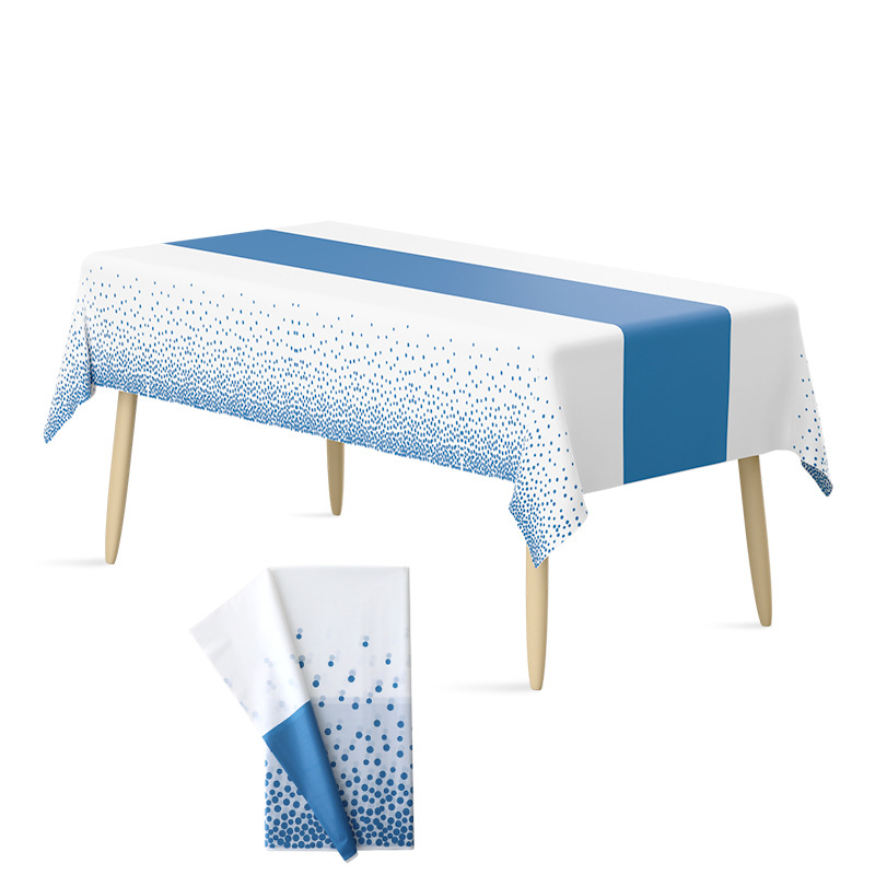 メーカー直販使い捨てアマゾン国境を越えたパーティーpevaドットテーブルクロスとポリエステルテーブル旗防水防油