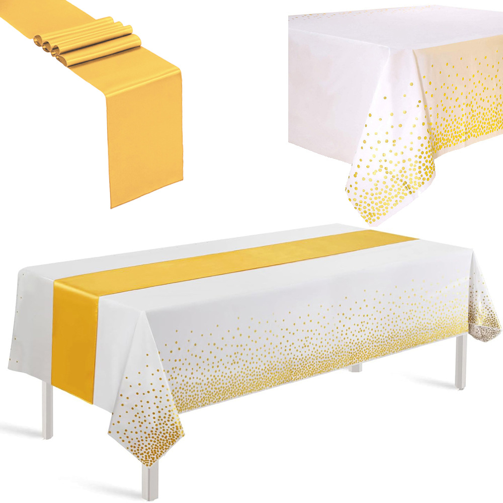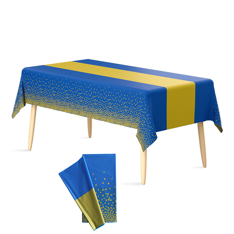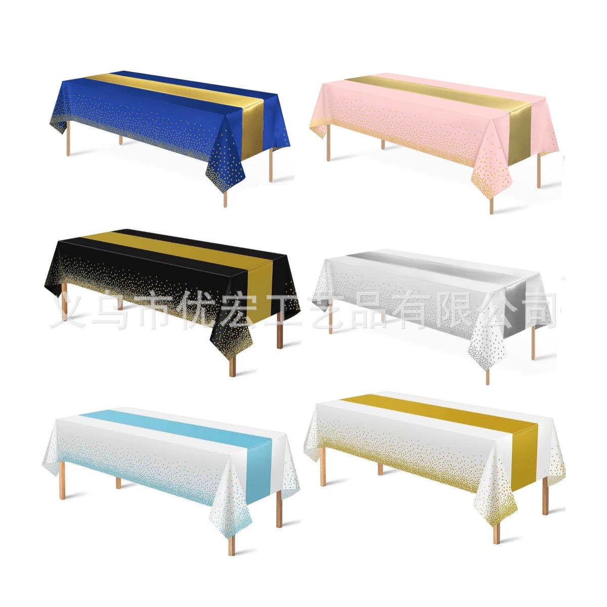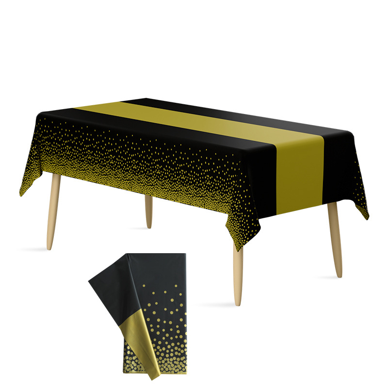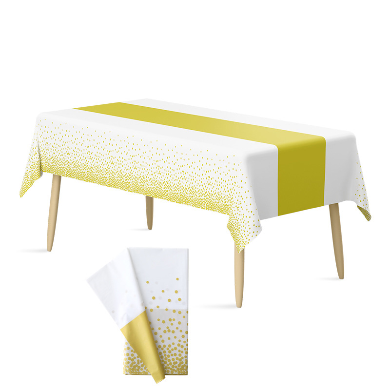 使い捨て長方形テーブル旗テーブルクロスpevaアマゾンクロスボーダー防水金色プラスチックパーティープリントテーブルクロス