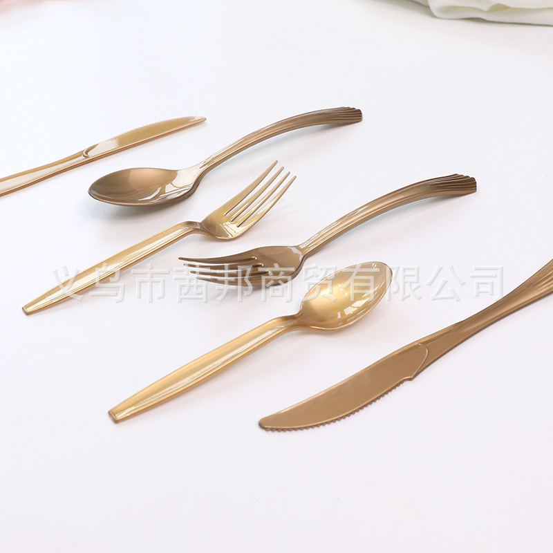 使い捨てゴールデンナイフフォークスプーンプラスチック食器セット誕生日パーティー結婚式用品洋食バラ金ナイフフォークスプーン