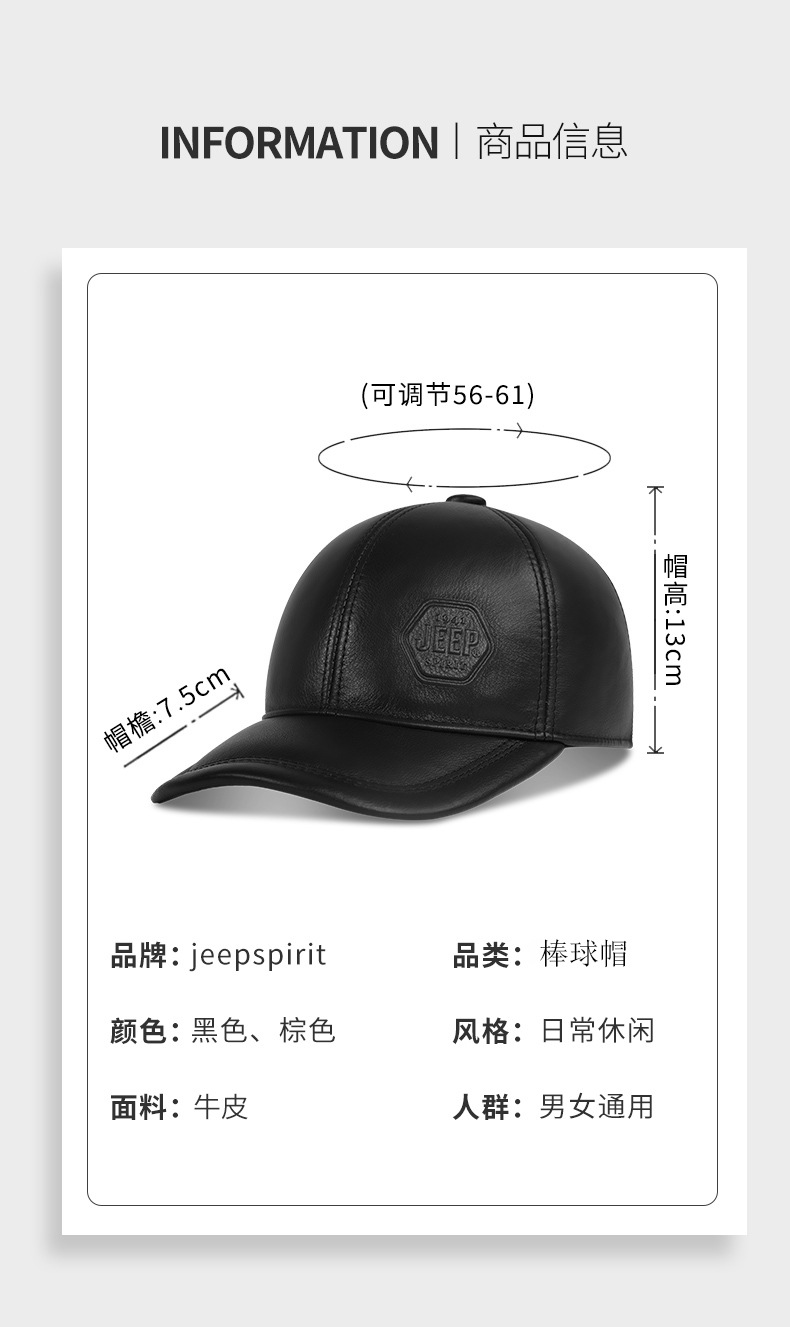 代件jeep spirit男性真皮羊皮野球帽om18cd996ca0021