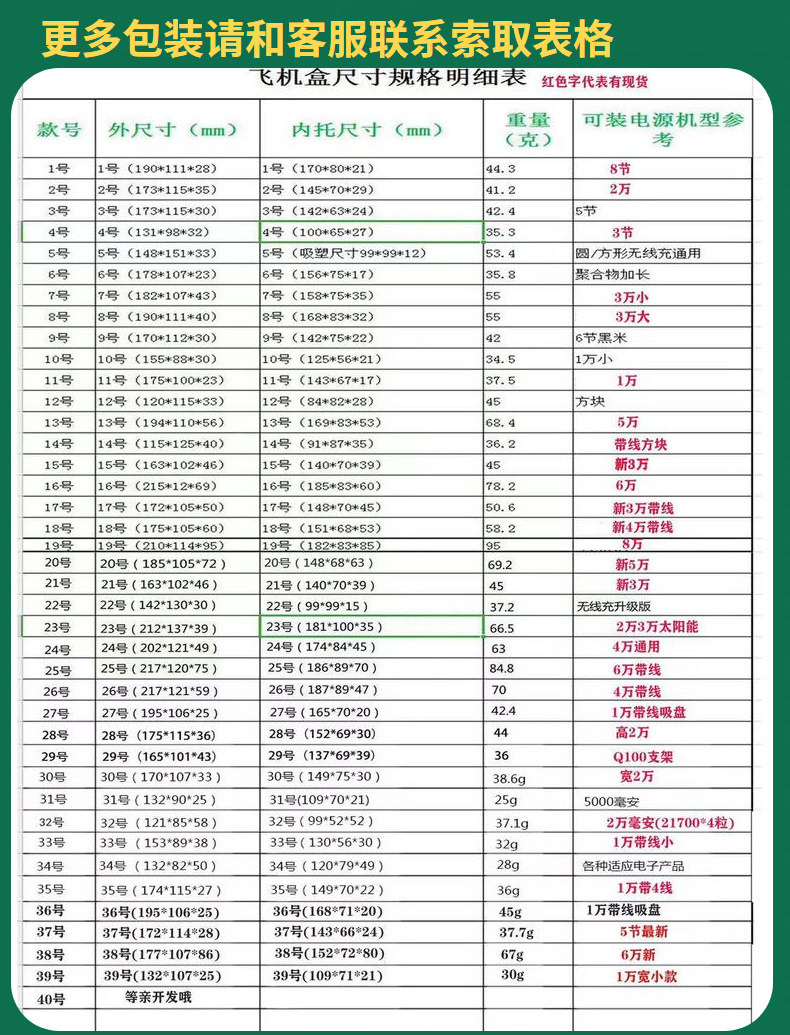 尺寸标的是个别款缺货,重新定制需要5千起,十天左右发货!拍下都是空盒,要加中性贴纸0.1元,大容量中性贴0.2元,0.3元。需要订做贴纸或者吸塑请联系客服!