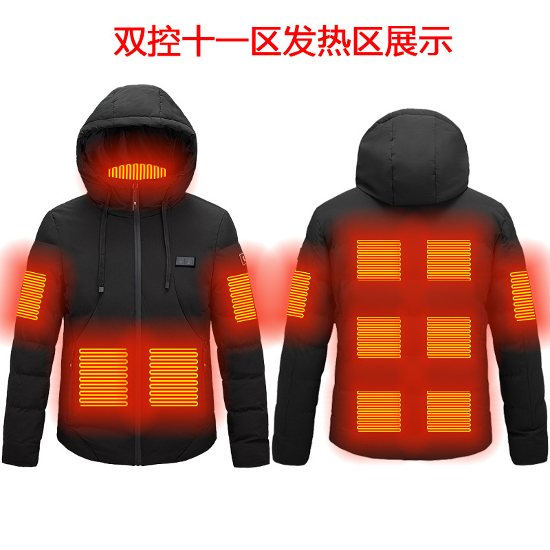 新型ダブルコントロール十一区知能発熱綿服フード付き保温男性用綿服屋外炭素繊維加熱コート