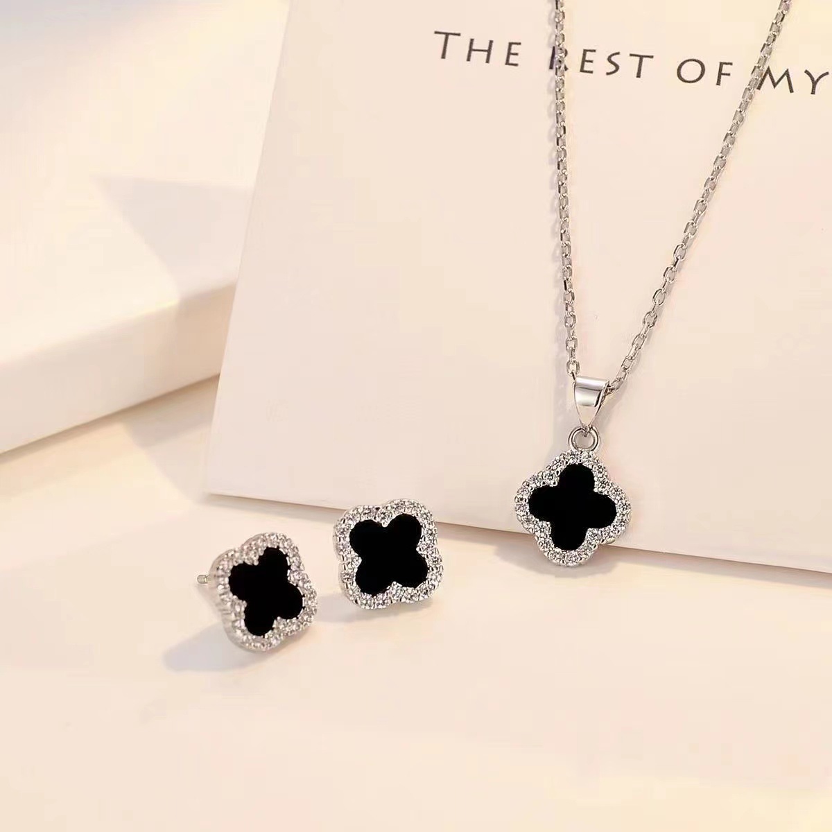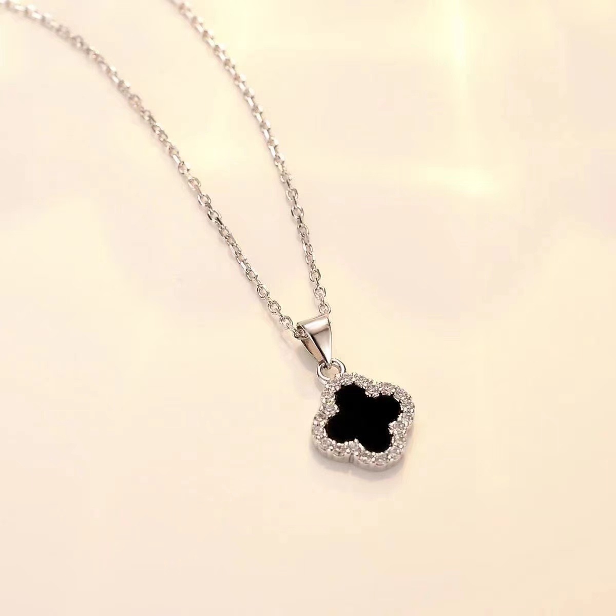 轻奢气质镶钻四叶草钛钢项链女小众锁骨链简约百搭高级黑吊坠颈链