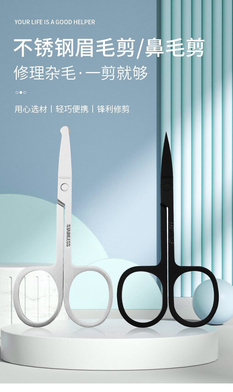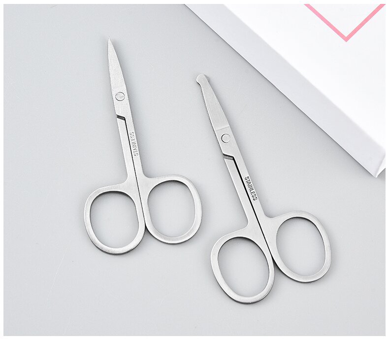 メーカー卸売ステンレス鋼眉毛鼻毛はさみラウンドヘッドと尖った鼻毛トリミングはさみ美容メイクツール