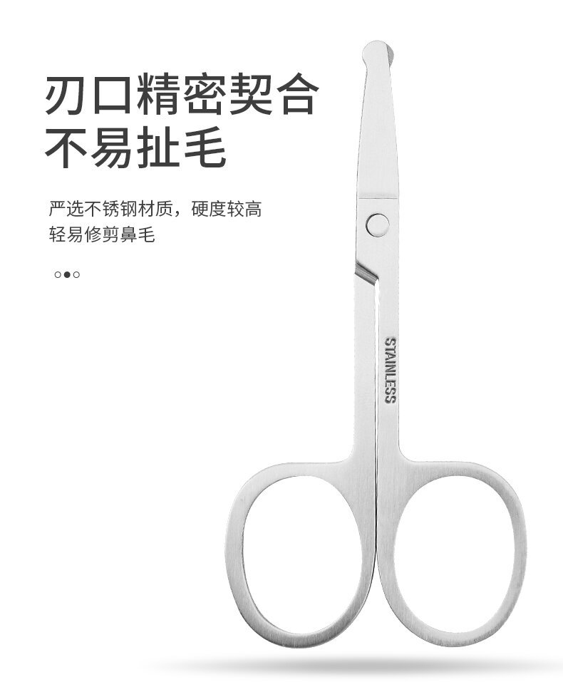 現物ステンレスの鼻毛ハサミの丸い先の先に鼻毛を修理して安全に切って、男女は鼻毛を剃って眉を修理します。