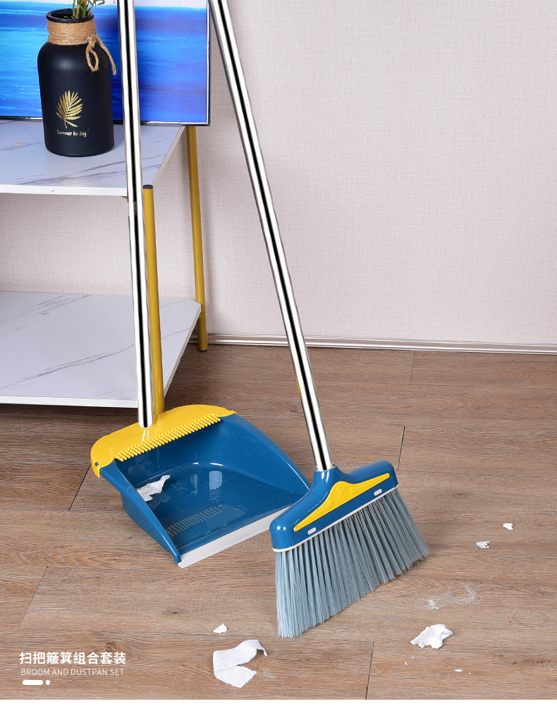 ほうきとちりとりの組み合わせ、掃き掃除セット、家庭用ソフト毛ほうき、ステンレス製ロングスクレーパー、新モデル、送料無料