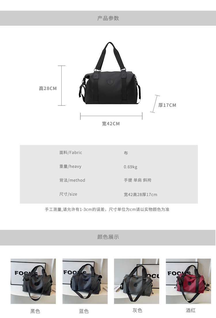 旅行バッグ レディース 短距離旅行用 ポータブル ハンドバッグ 旅行用荷物バッグ 小型 新品 韓国風 大容量 スポーツ フィットネスバッグ