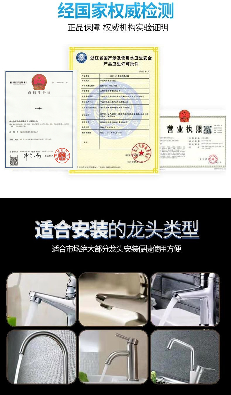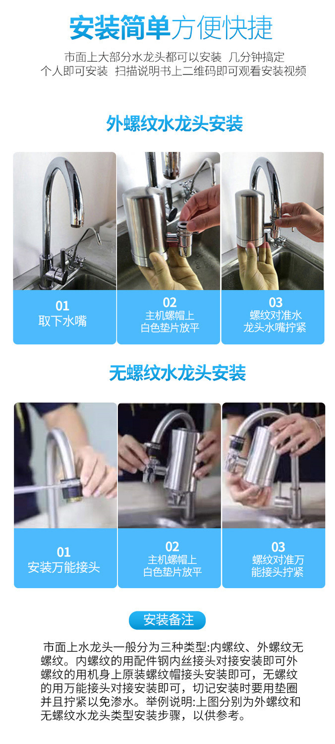 购买须知:龙头净水器与市面上99%的龙头想匹配,如方形等奇形怪状装不了请更换自家龙头,不同意更换