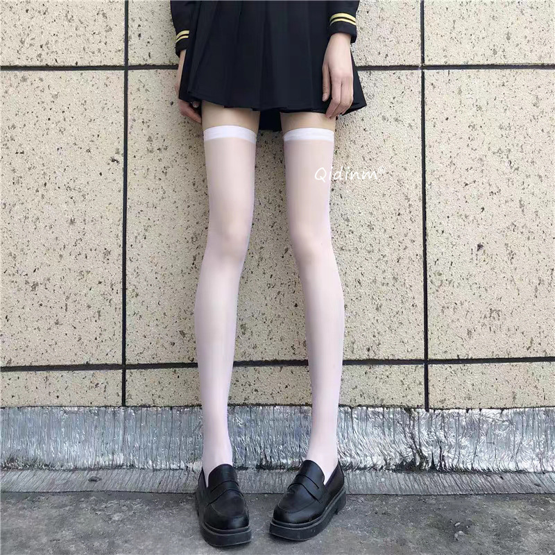 ストッキングの女性の超薄夏の防勾糸の肉色は膝の靴下の高い筒の半分の滑り止めの黒色jkの純欲の白い靴下を過ぎます。