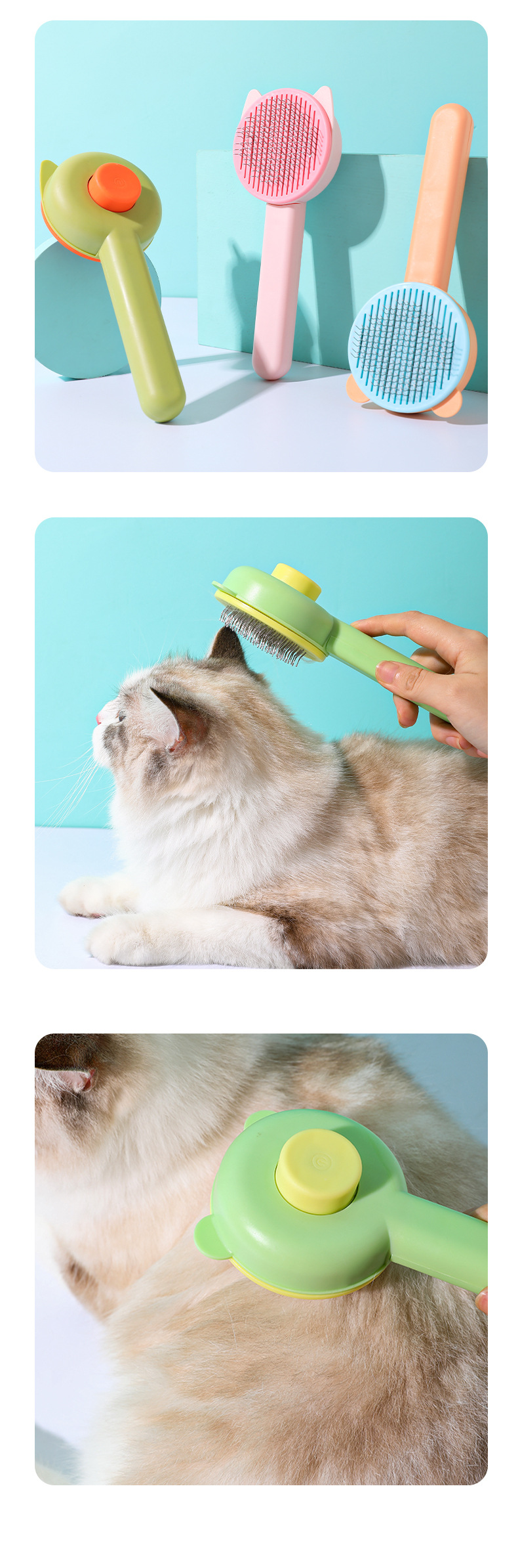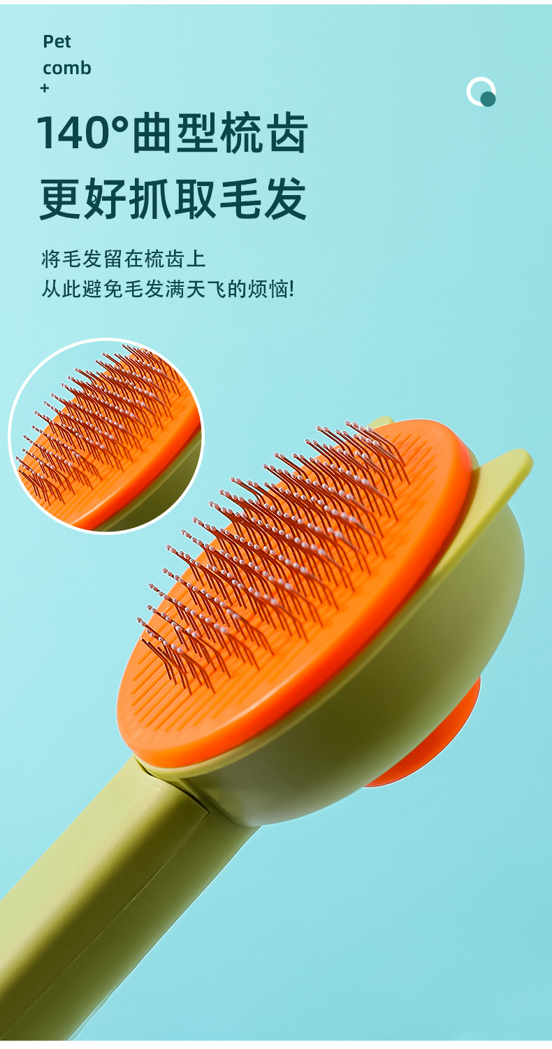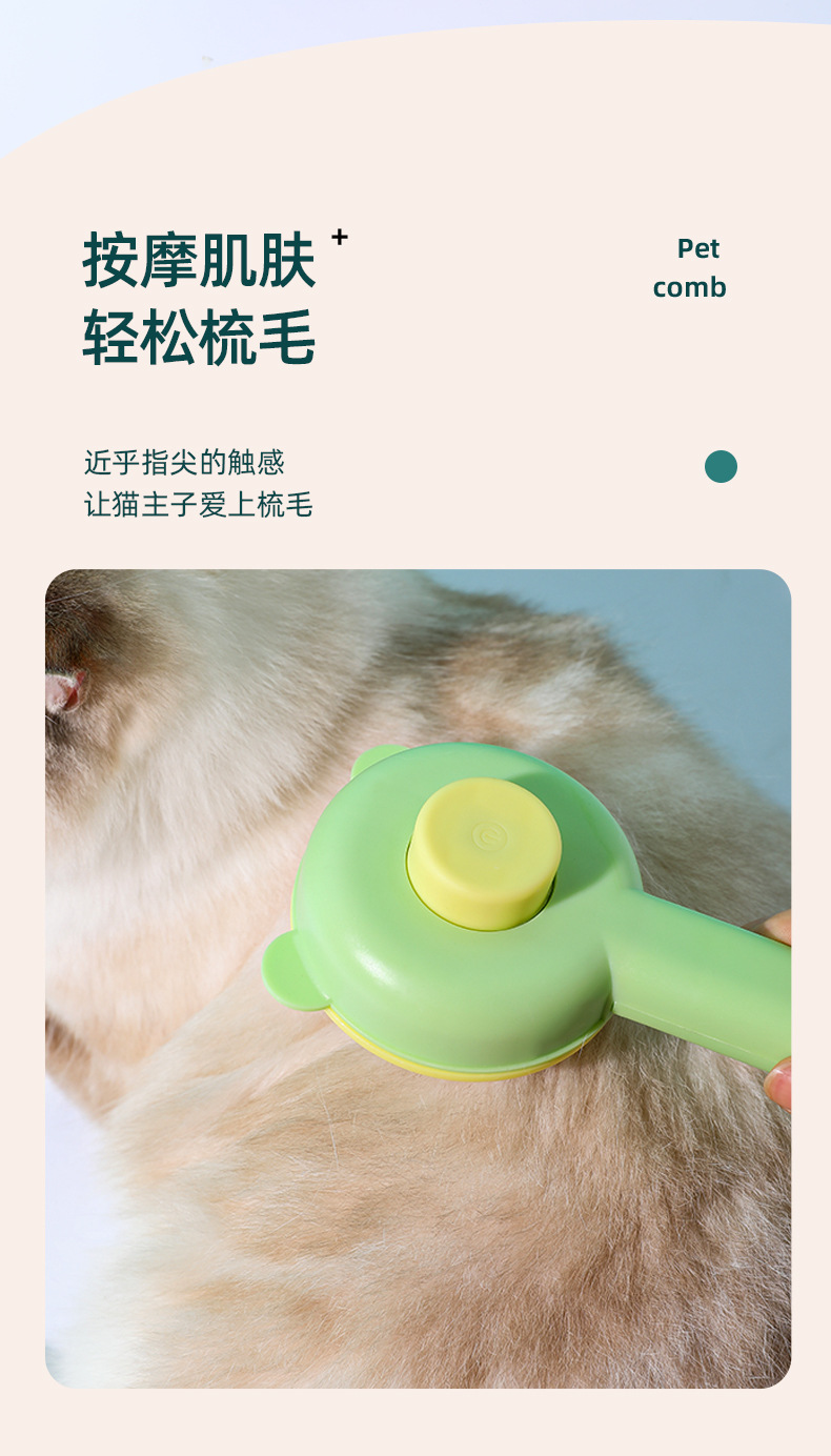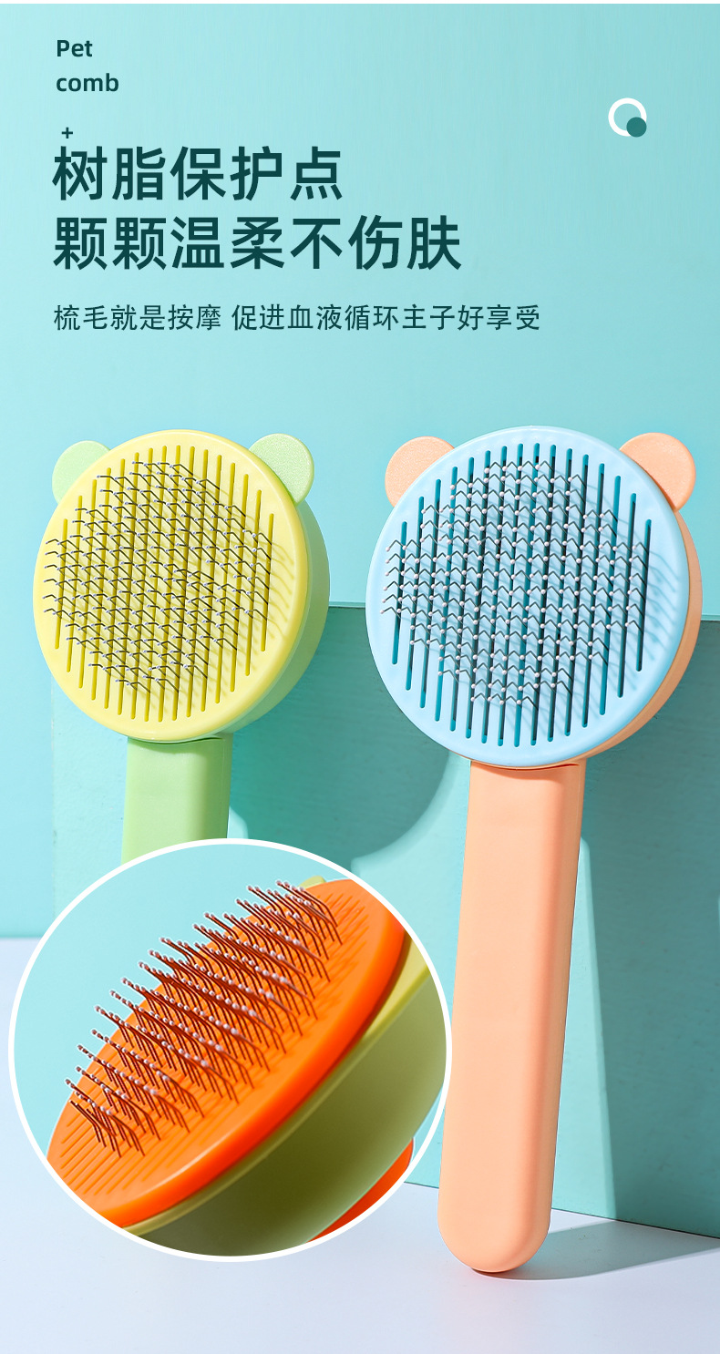 カラーブロックボタン付きベア型セルフクリーニングコーム、ペット用猫コーム、浮毛除去ニードルコーム、猫犬用グルーミング、浮毛除去用品卸売