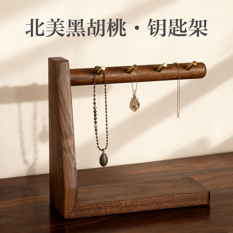 北美黑胡桃木饰品置物架玄关钥匙收纳架桌面杂物收纳托盘首饰挂架