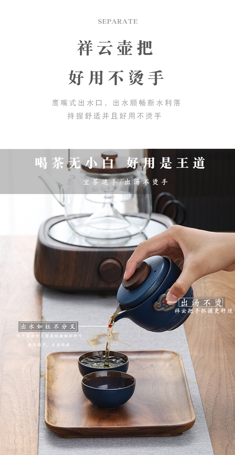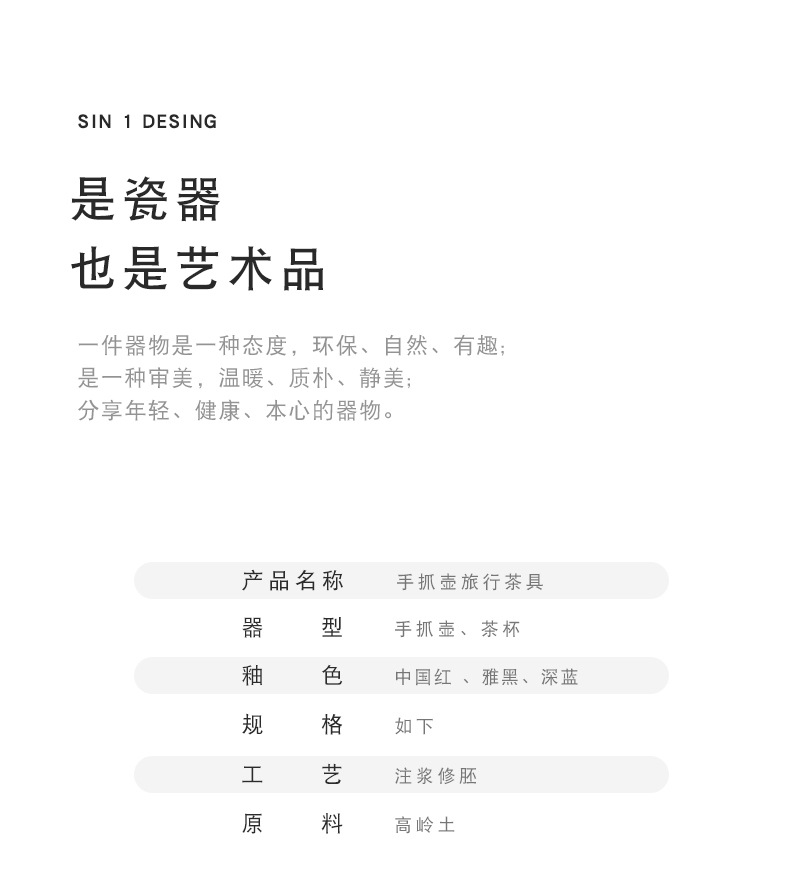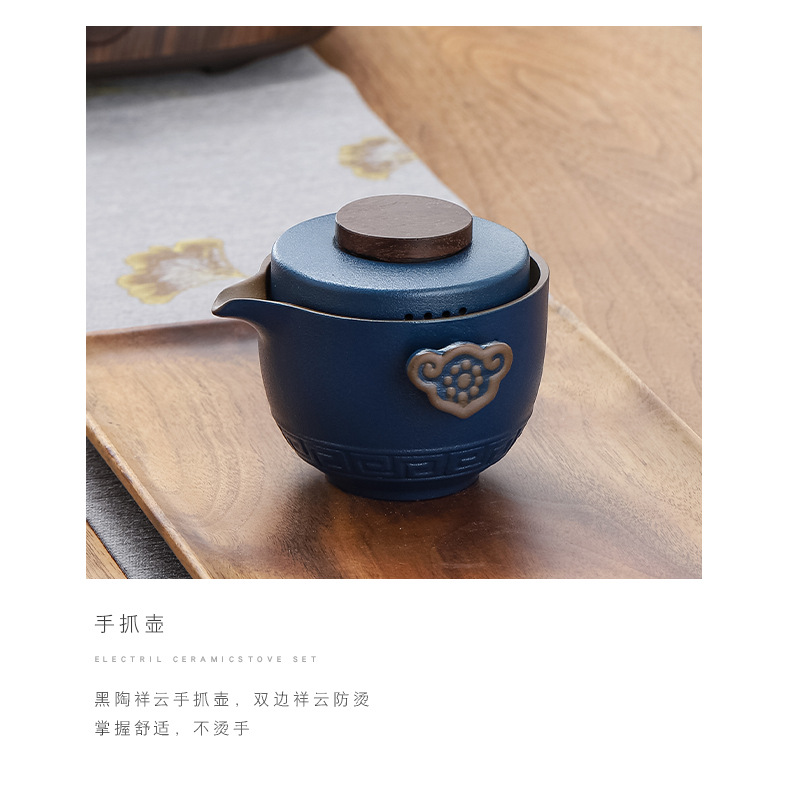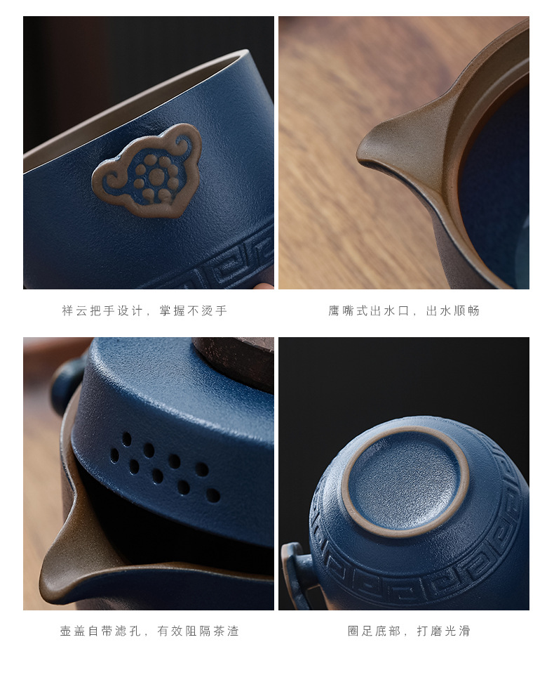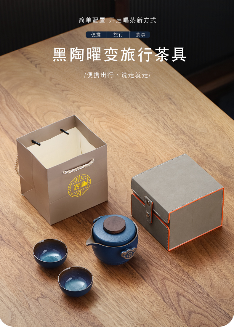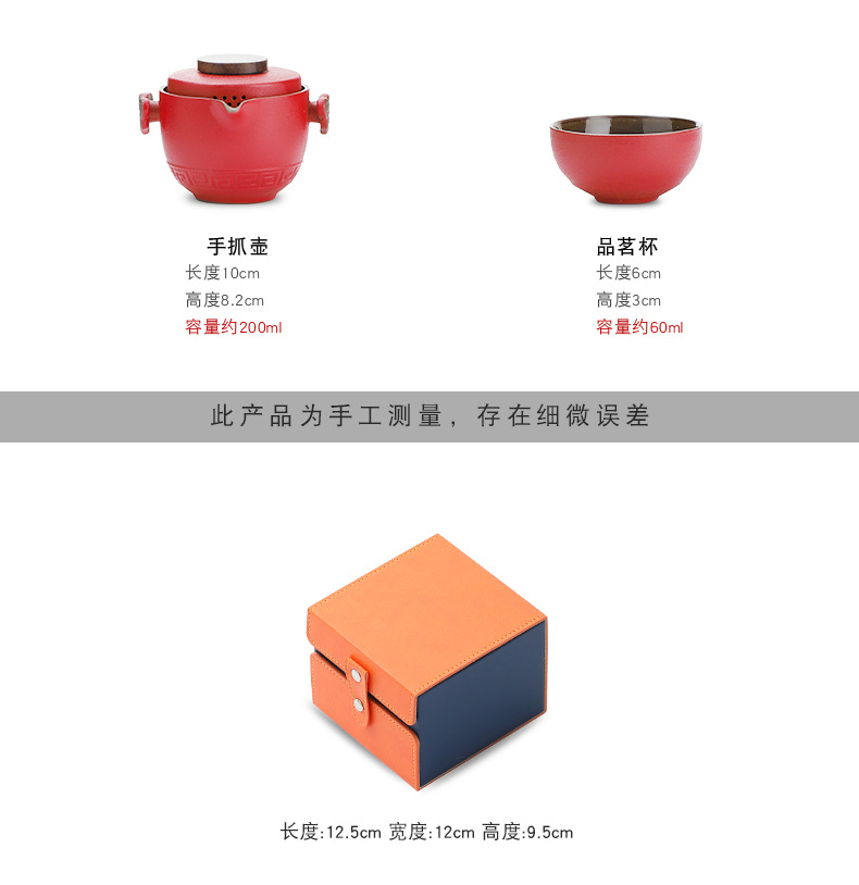 复古青花火石红手抓壶旅行茶具套装一壶两杯快客杯户外便携泡茶壶