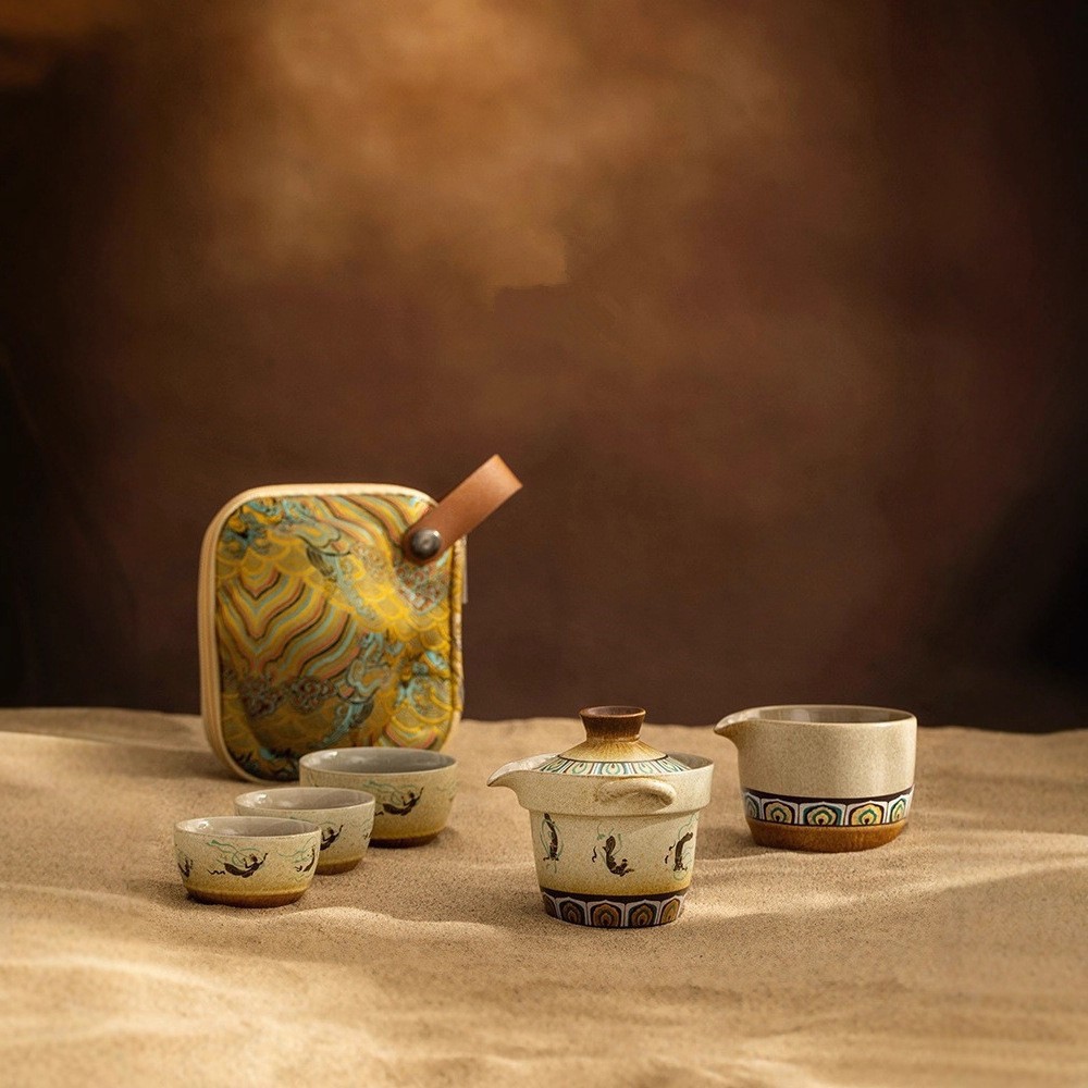 敦煌文创旅行茶具套装户外便携一壶三杯快客杯陶瓷功夫茶具伴手礼