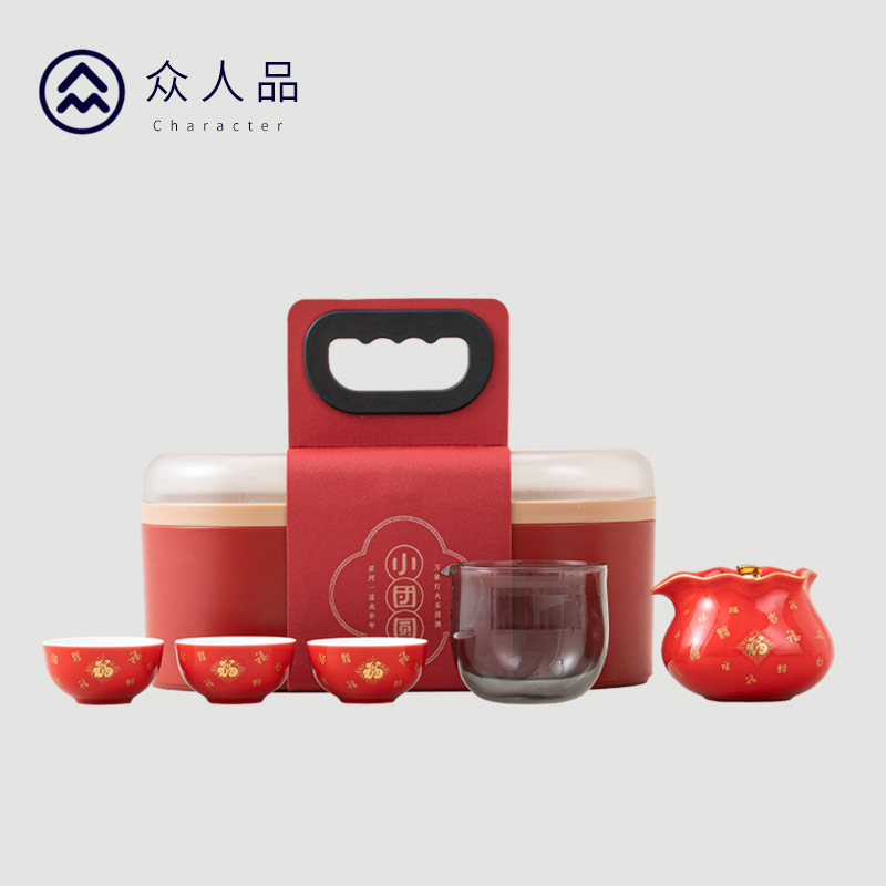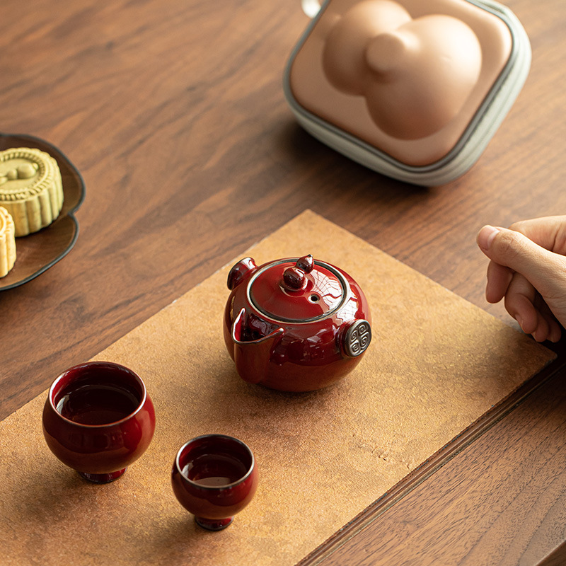 国潮原创故宫红葫芦茶壶手抓壶茶杯旅行茶具套装居家户外快客杯装