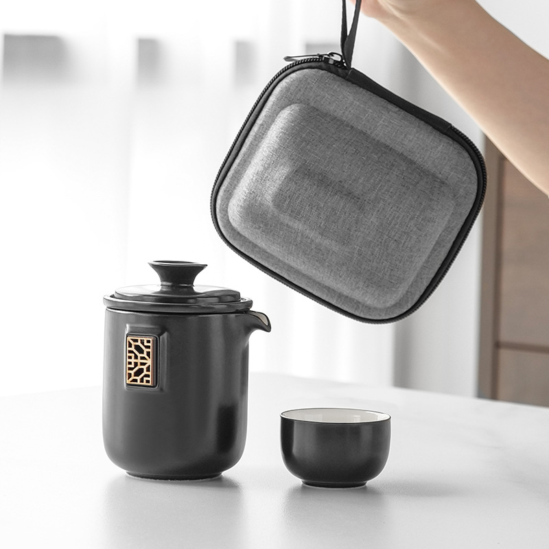 工夫旅行茶器セット1つのポット2つの屋外携帯型セラミックレトロなティーポットのカップロゴ