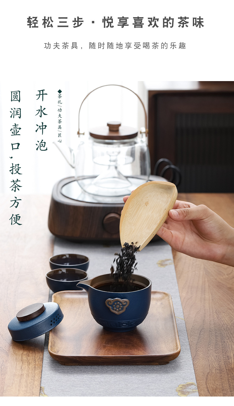 旅行茶器セット携帯式ティーポット屋外キャンプ家庭用茶盤陶磁器工夫中国式汝窯カップ