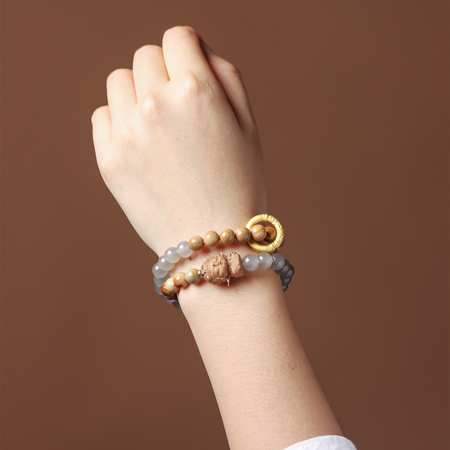 楼兰戈壁色,库克飘花 搭配偏区老山度母 紧箍咒跑环 玛瑙等
