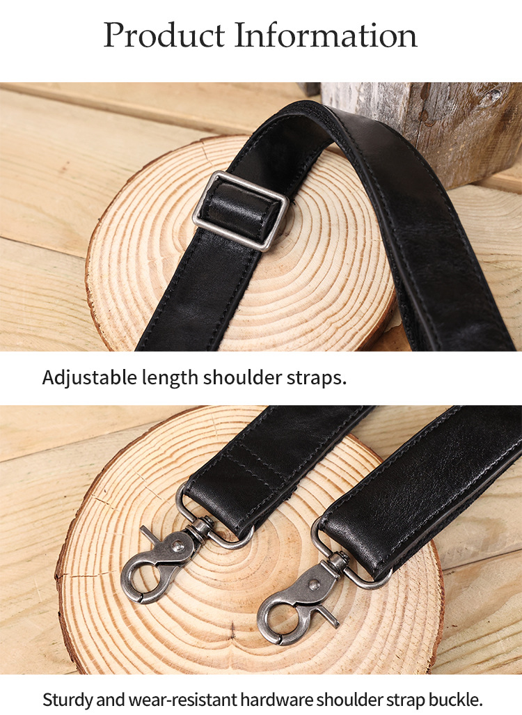 牛革ベルトの斜め掛けの肩ベルトの部品は調整できます。